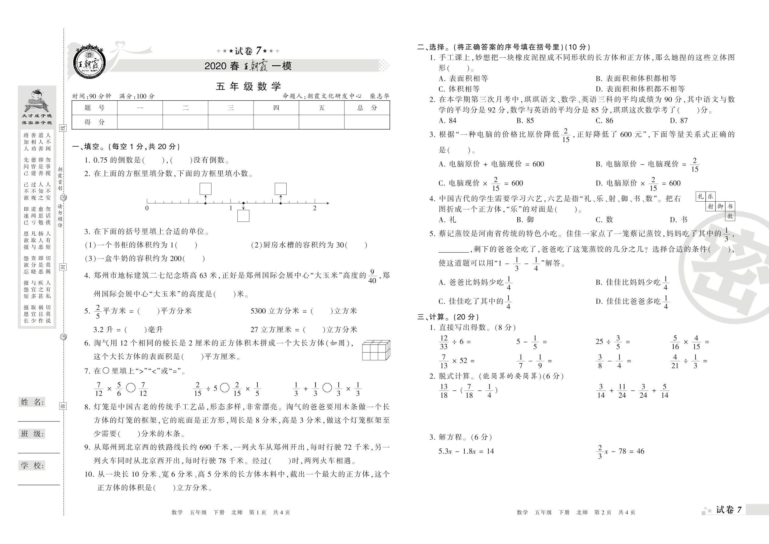 王朝霞期末模拟卷五年级下册数学(北师版)_R21080584854【7】