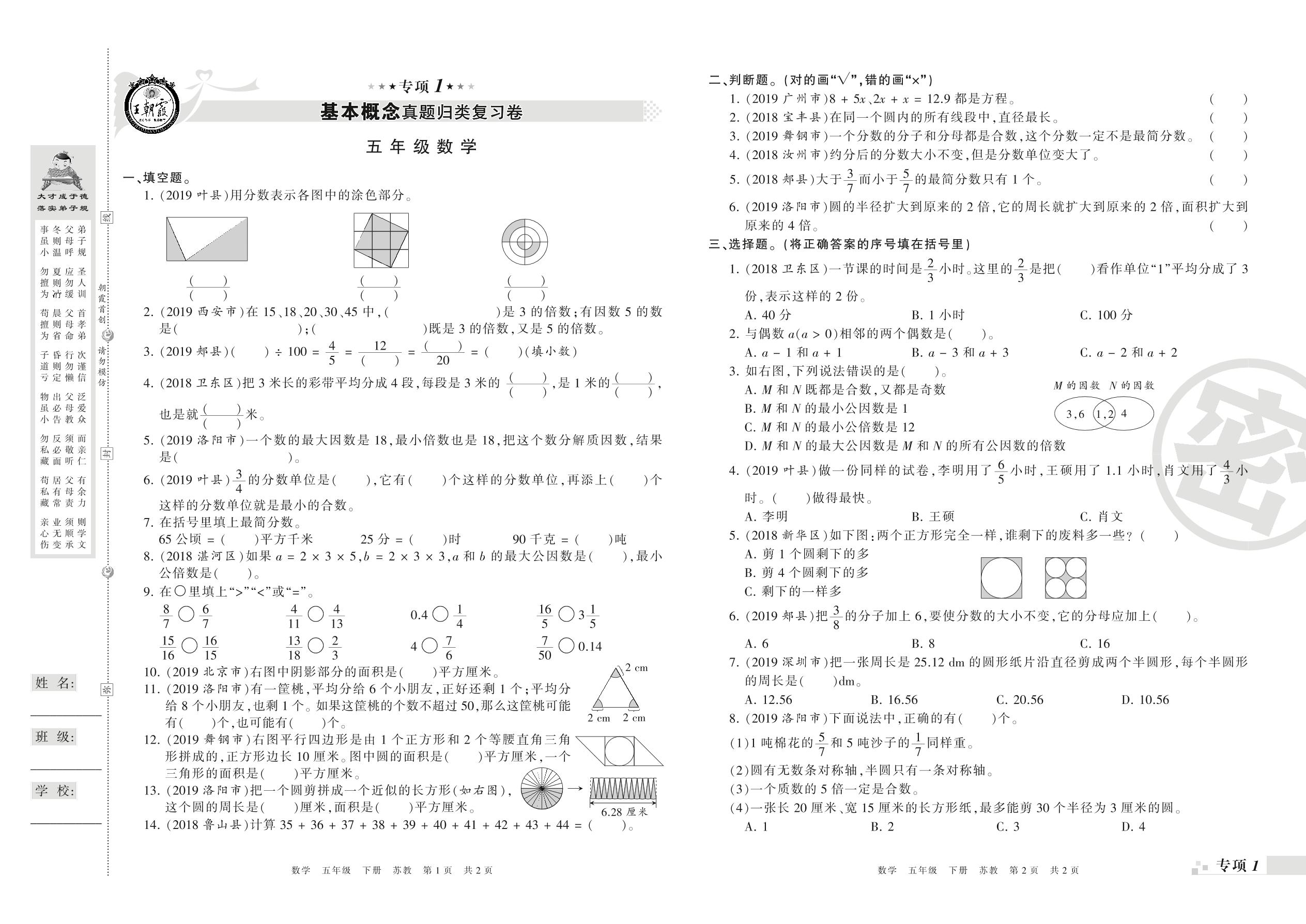 王朝霞期末专项卷——基本概念、计算真题归类复习卷五年级下册数学(苏教版)_R21080584934【0】