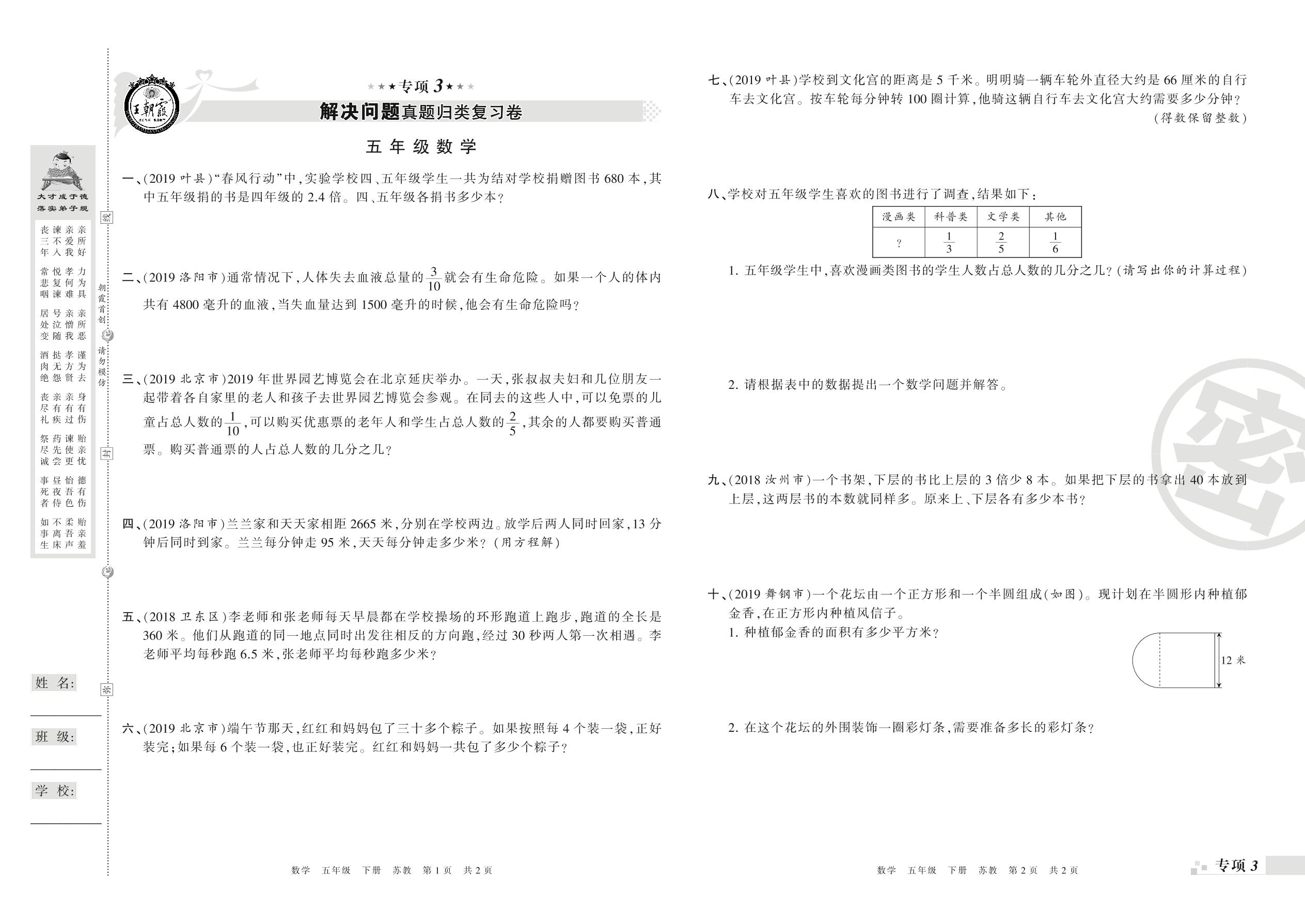王朝霞期末专项卷——解决问题真题归类复习卷、新颖题速递:生活与数学五年级下册数学(苏教版)_R21080584937【0】
