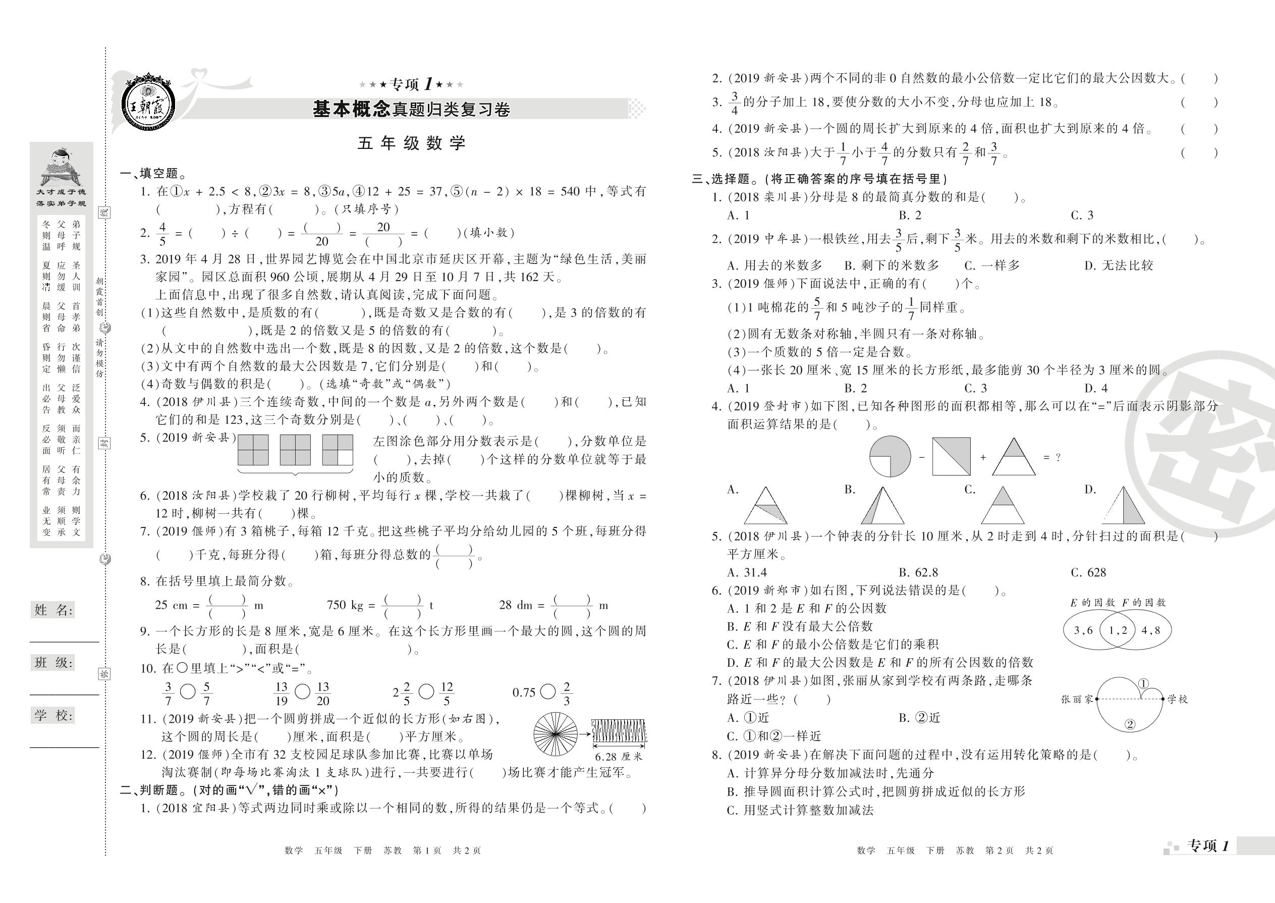 王朝霞期末专项卷——基本概念、计算真题归类复习卷五年级下册数学(苏教版)_R21080585045【0】