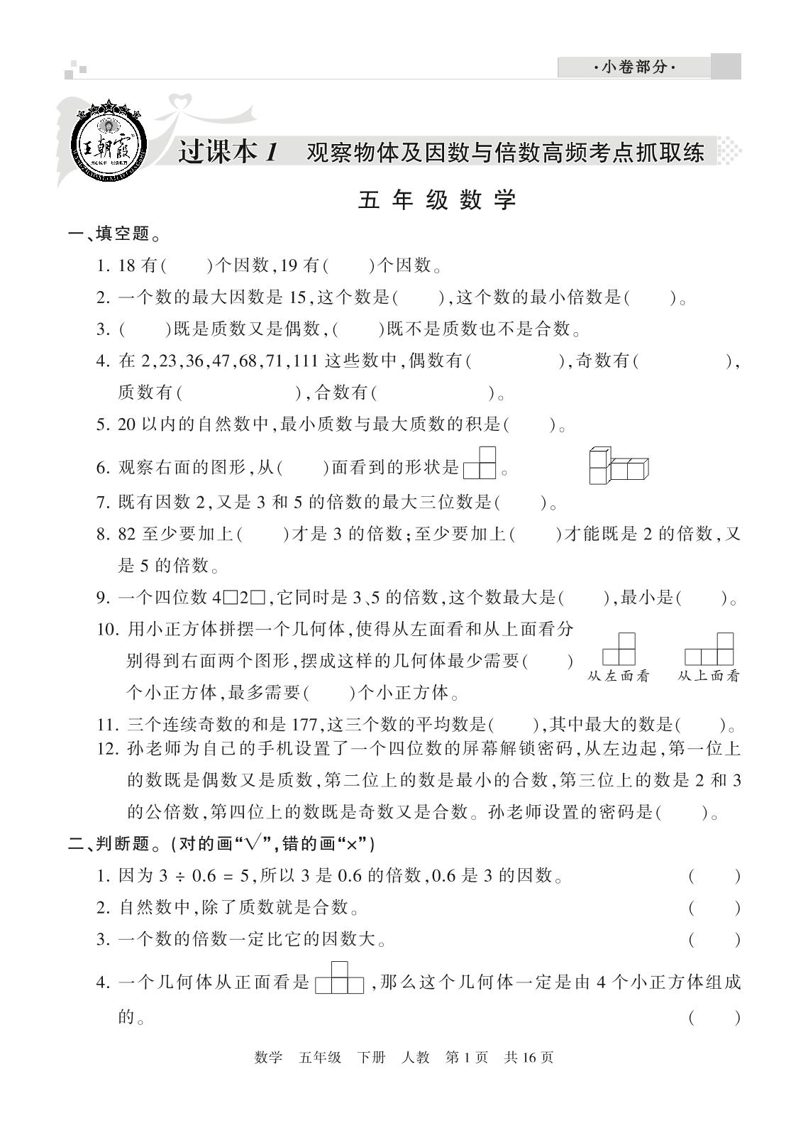 王朝霞期末过课本五年级下册数学(人教版)_R21080585212【0】