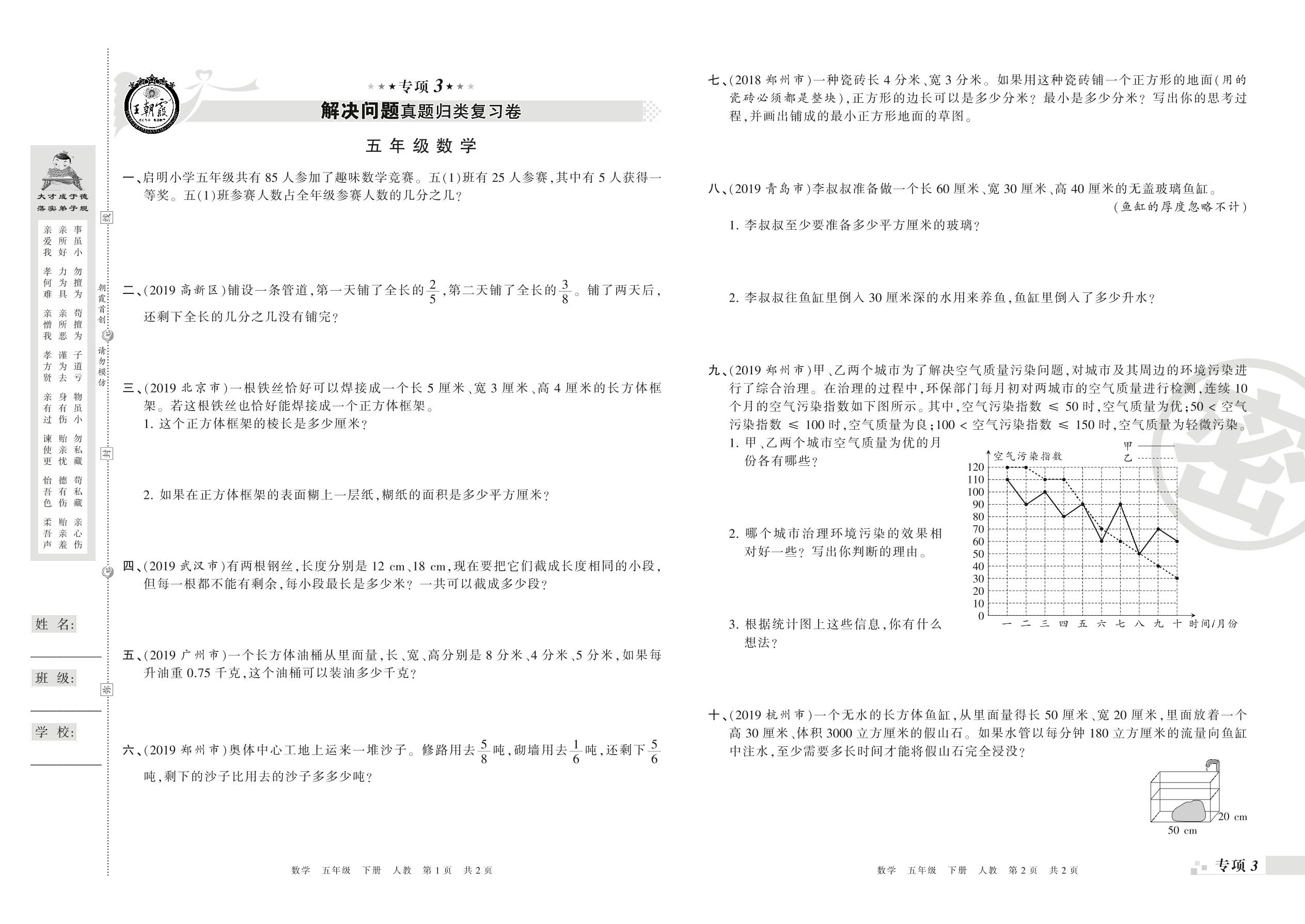 王朝霞期末专项卷——解决问题真题归类复习卷、新颖题速递:生活与数学五年级下册数学(人教版)_R21080585237【0】