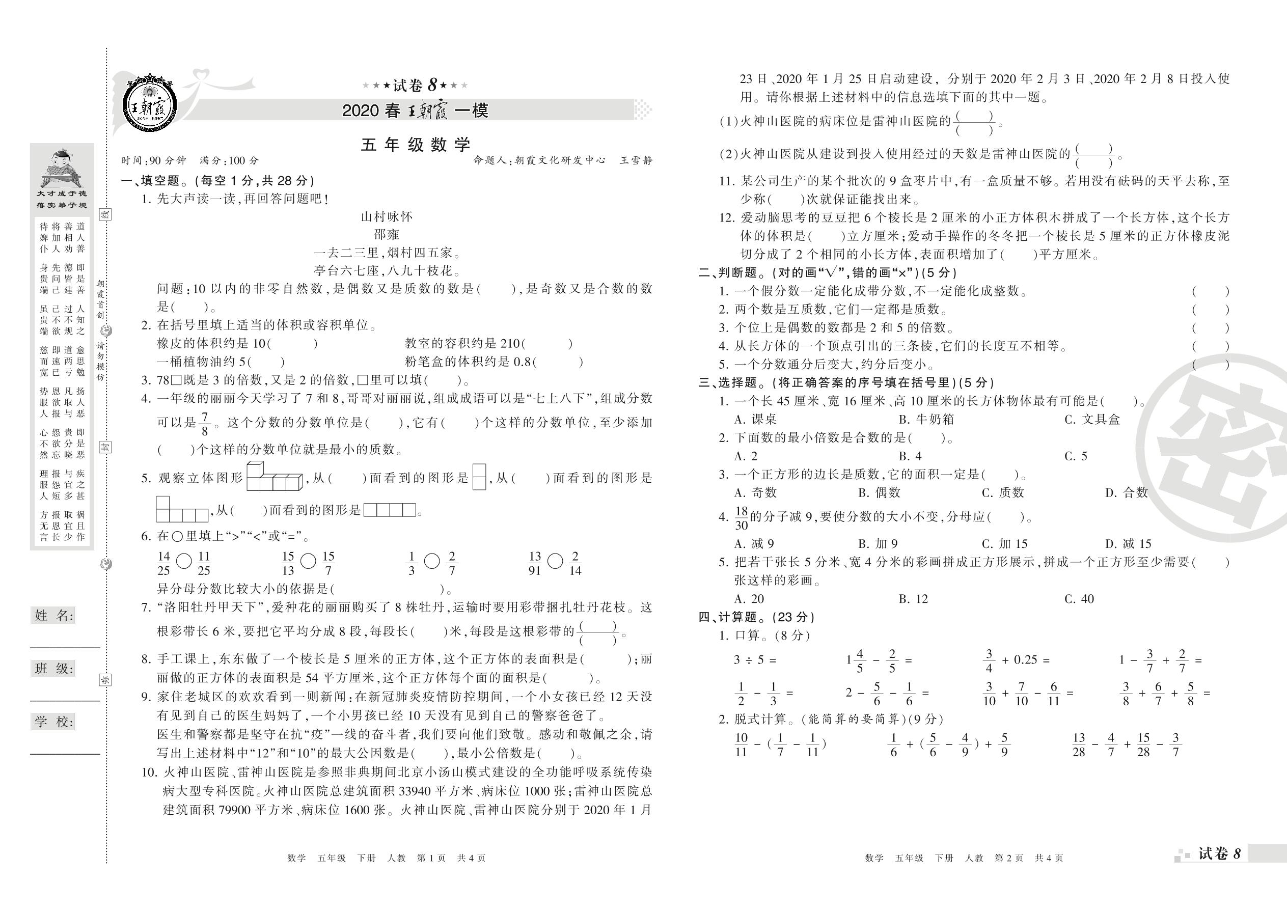 王朝霞期末模拟卷五年级下册数学(人教版)_R21080585325【8】