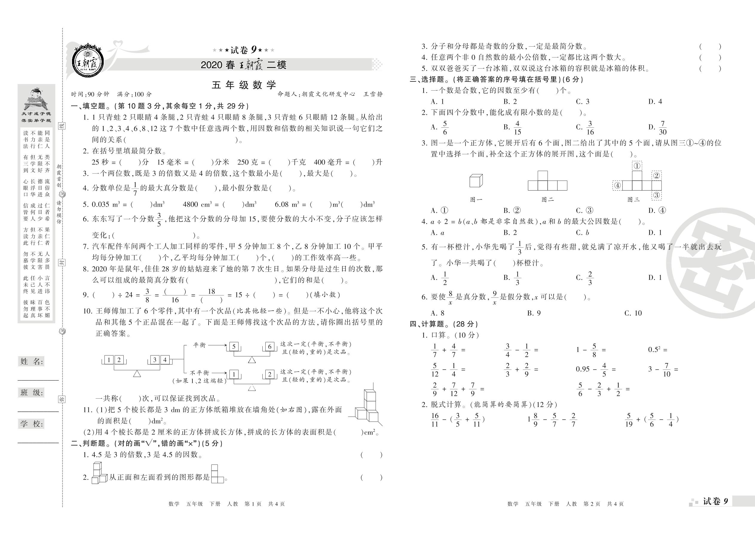 王朝霞期末模拟卷五年级下册数学(人教版)_R21080585335【9】