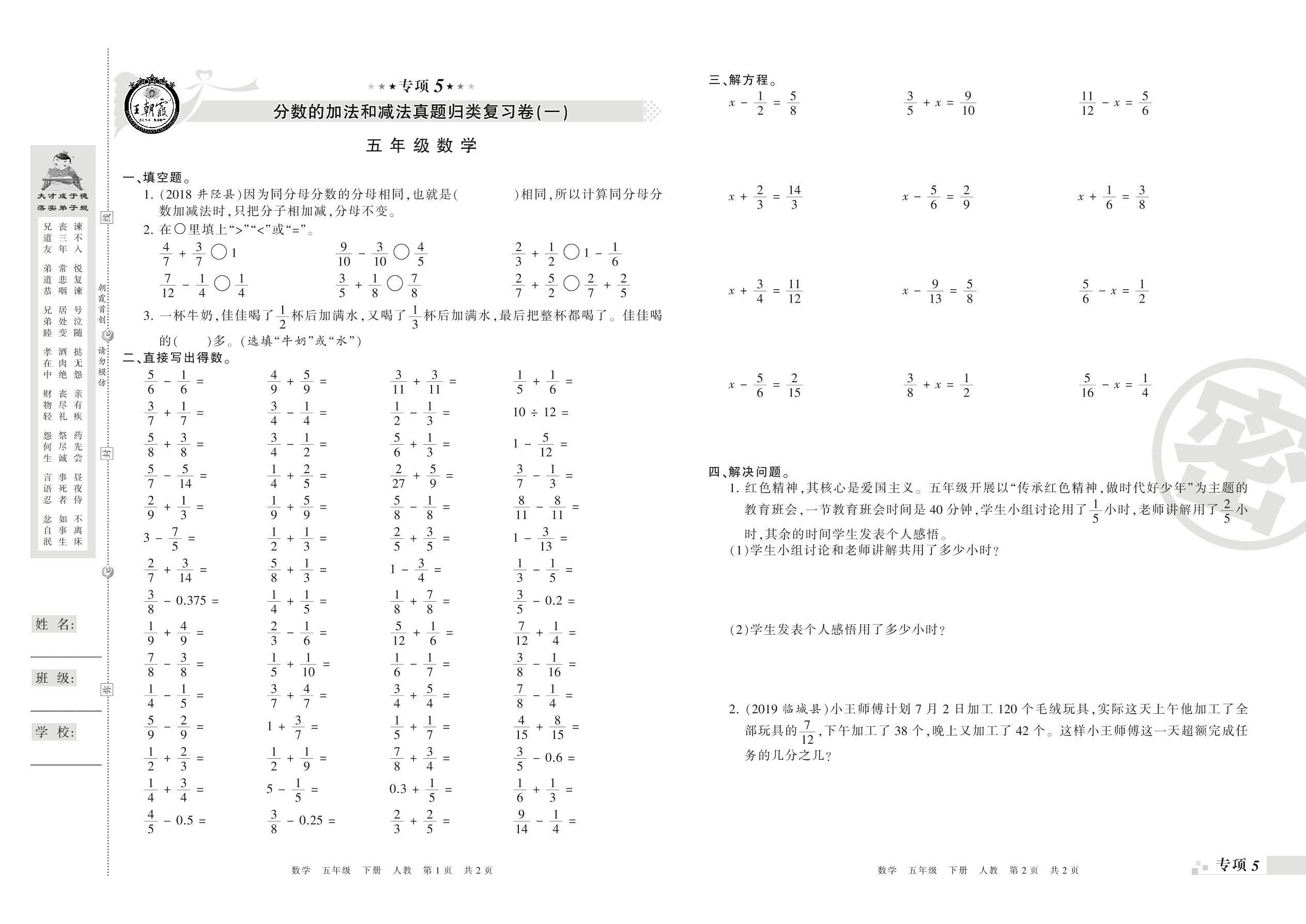 王朝霞期末专项卷——分数的加法和减法(一)(二)真题归类复习卷五年级下册数学(人教版)_R21080585411【0】