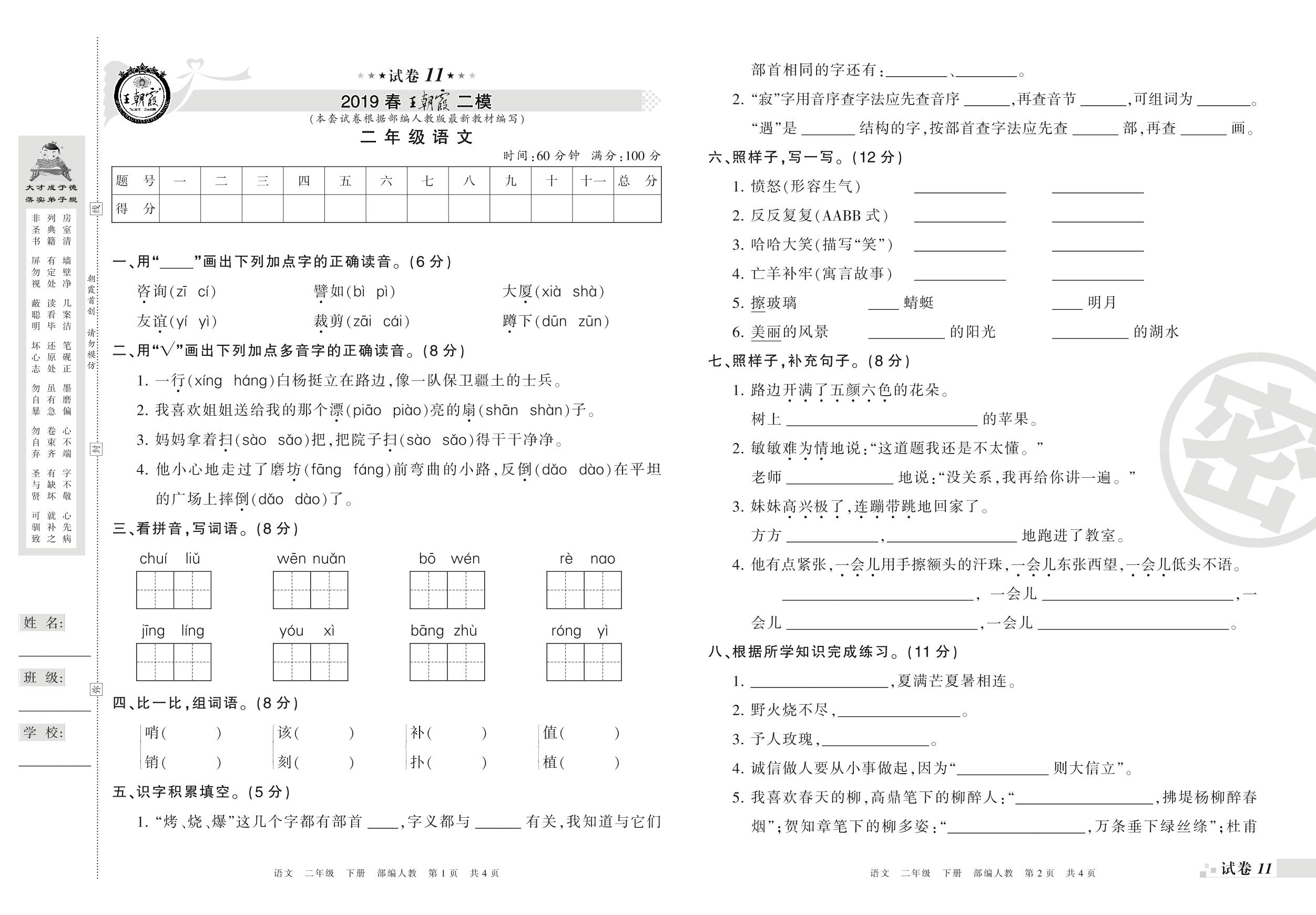 王朝霞期末模拟卷二年级下册语文(人教版)_R21080171950【11】