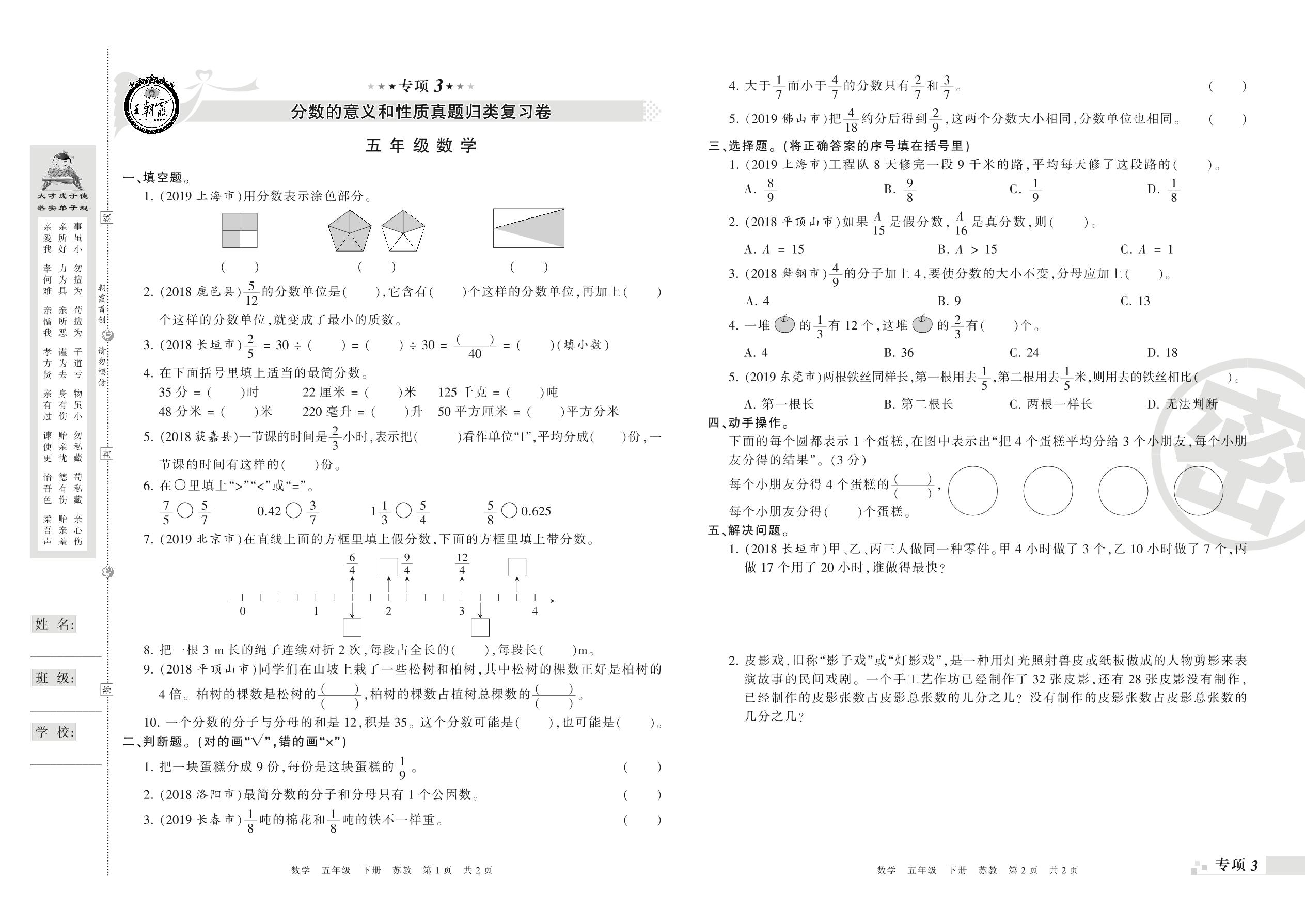 王朝霞期末专项卷——分数的意义和性质、分数加法和减法(一)真题归类复习卷五年级下册数学(苏教版)_R21080585710【0】