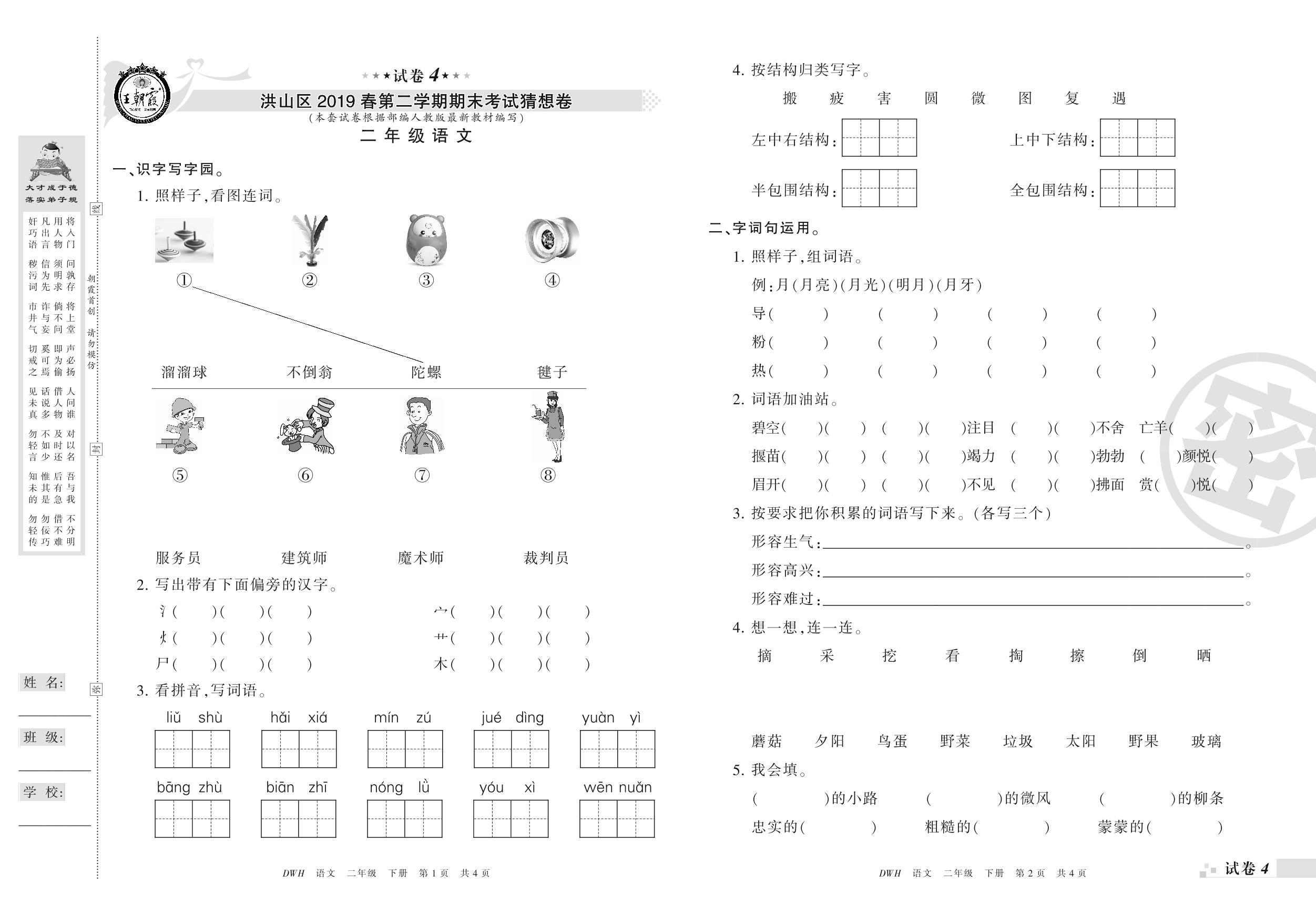 2017-2018学年第二学期武汉市洪山区二年级语文试卷(人教版)【4】