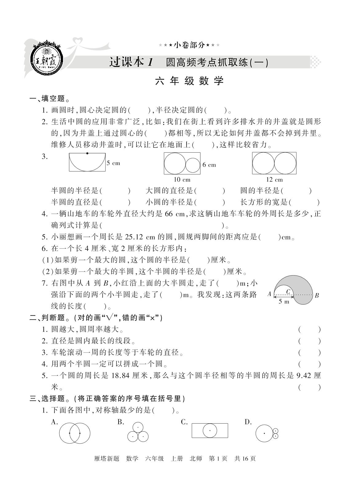 王朝霞期末过课本六年级上册数学(北师版)_R21080591352【0】