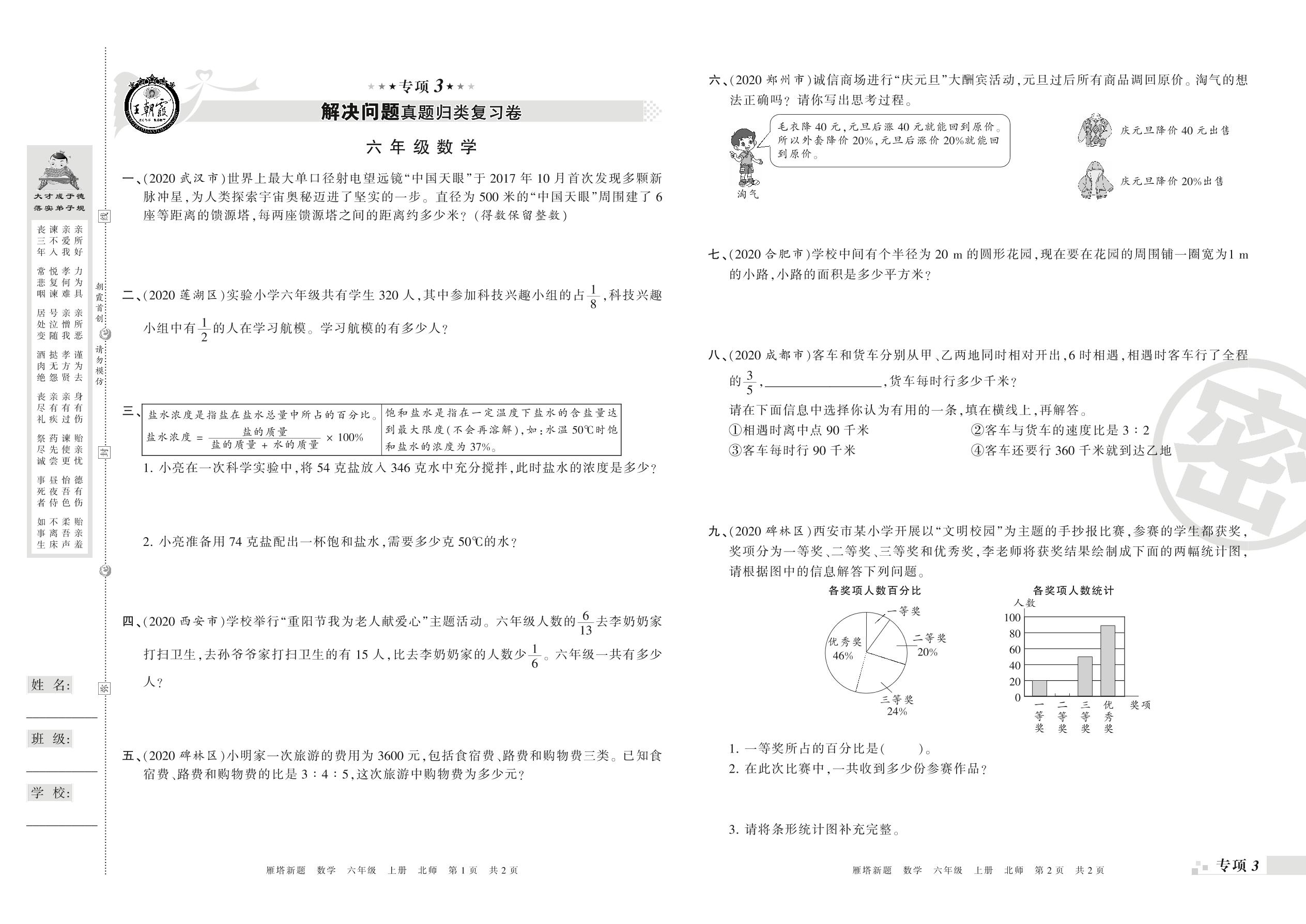 王朝霞期末专项卷——解决问题真题归类复习、新颖题速递:生活与数学六年级上册数学(北师版)_R21080591409【0】