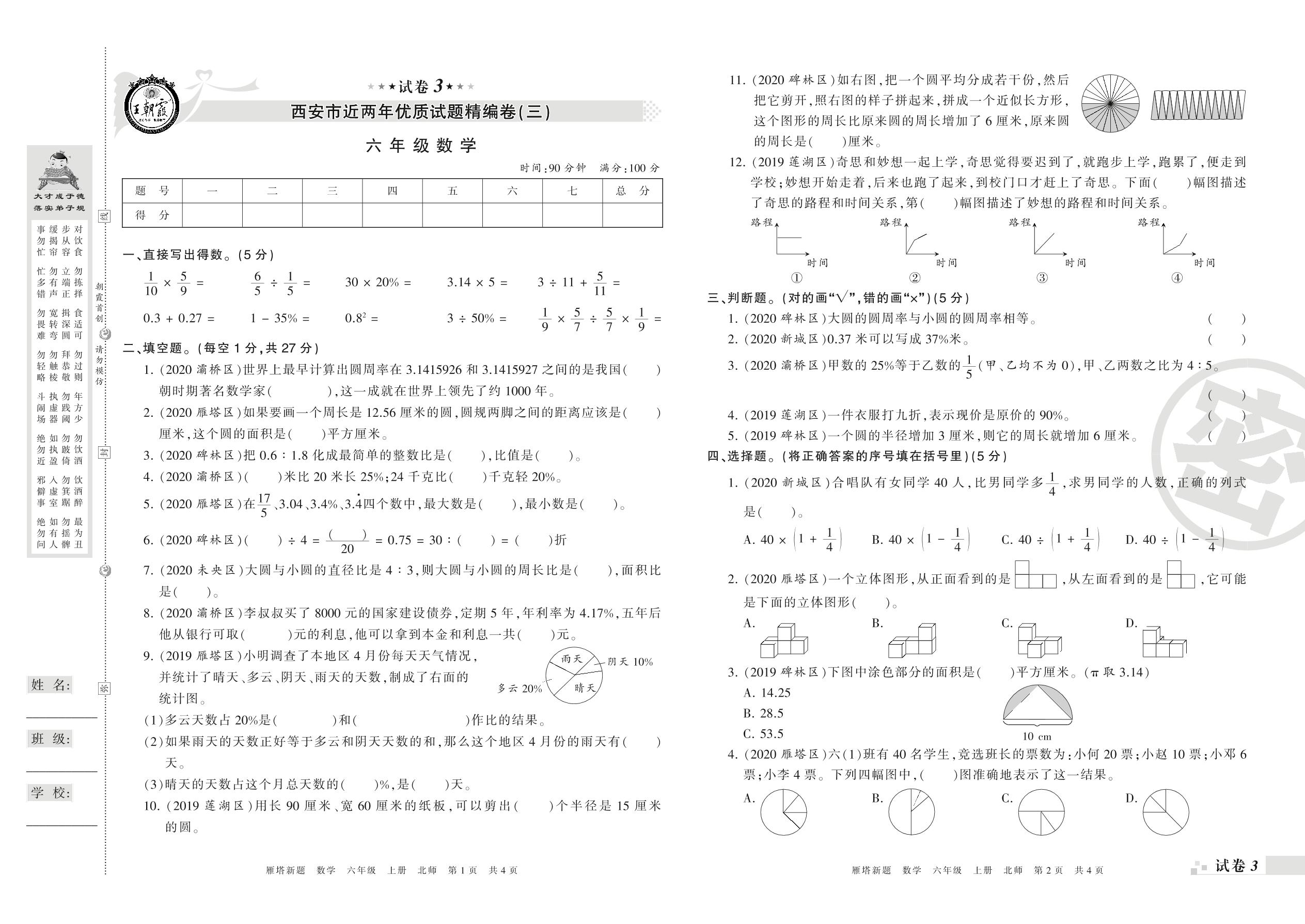 西安市近两年优质试题精编卷(三)六年级上册数学(北师版)_R21080591430【3】
