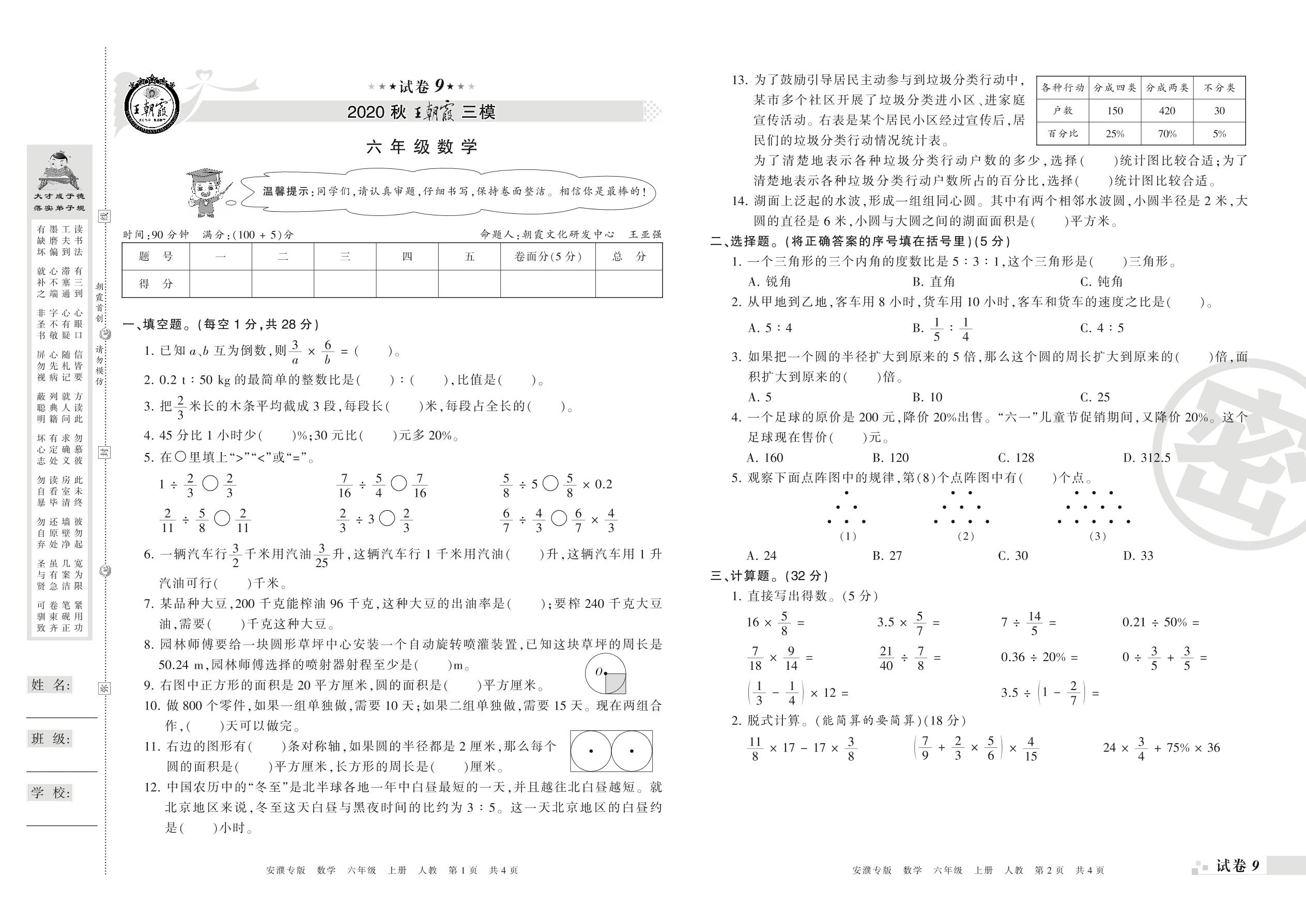 王朝霞期末模拟卷六年级上册数学(人教版)_R21080592026【9】