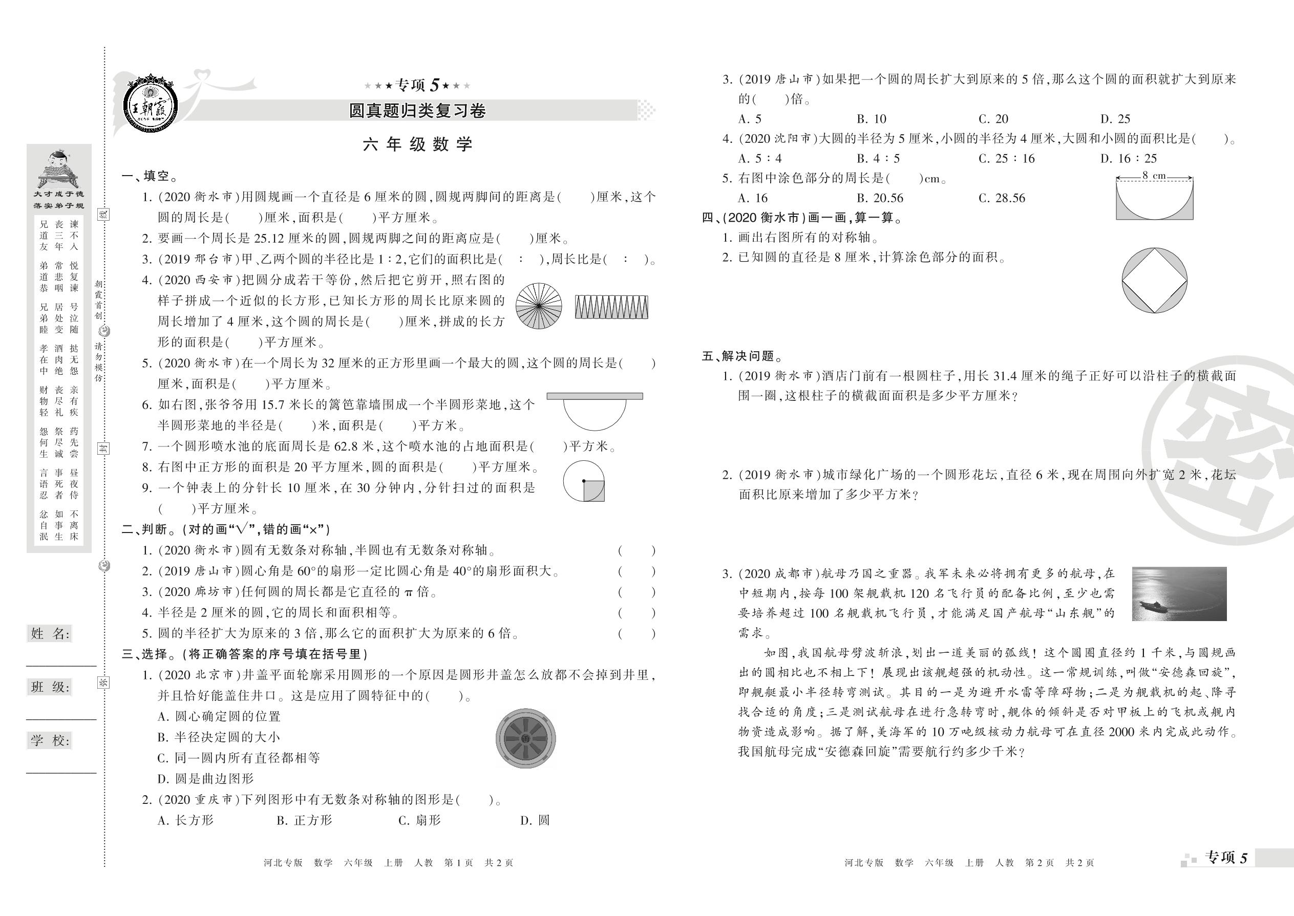 王朝霞期末专项卷——圆、百分数真题归类复习六年级上册数学(人教版)【0】