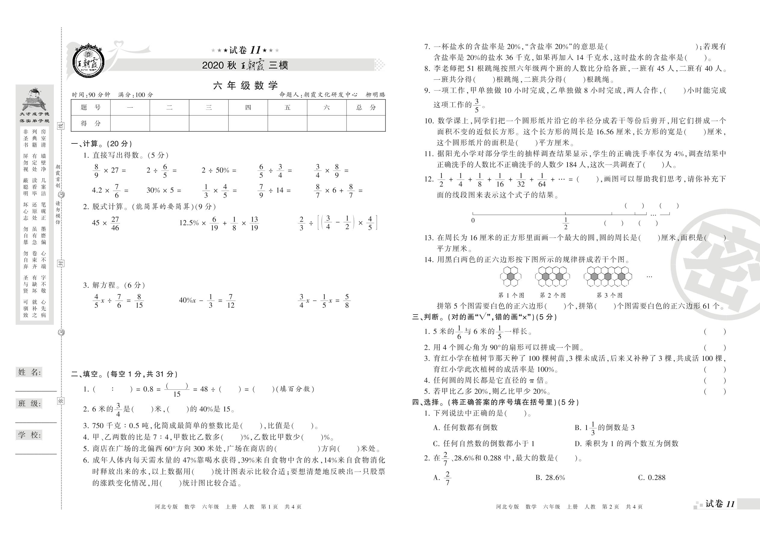 王朝霞期末模拟卷六年级上册数学(人教版)_R21080592209【11】