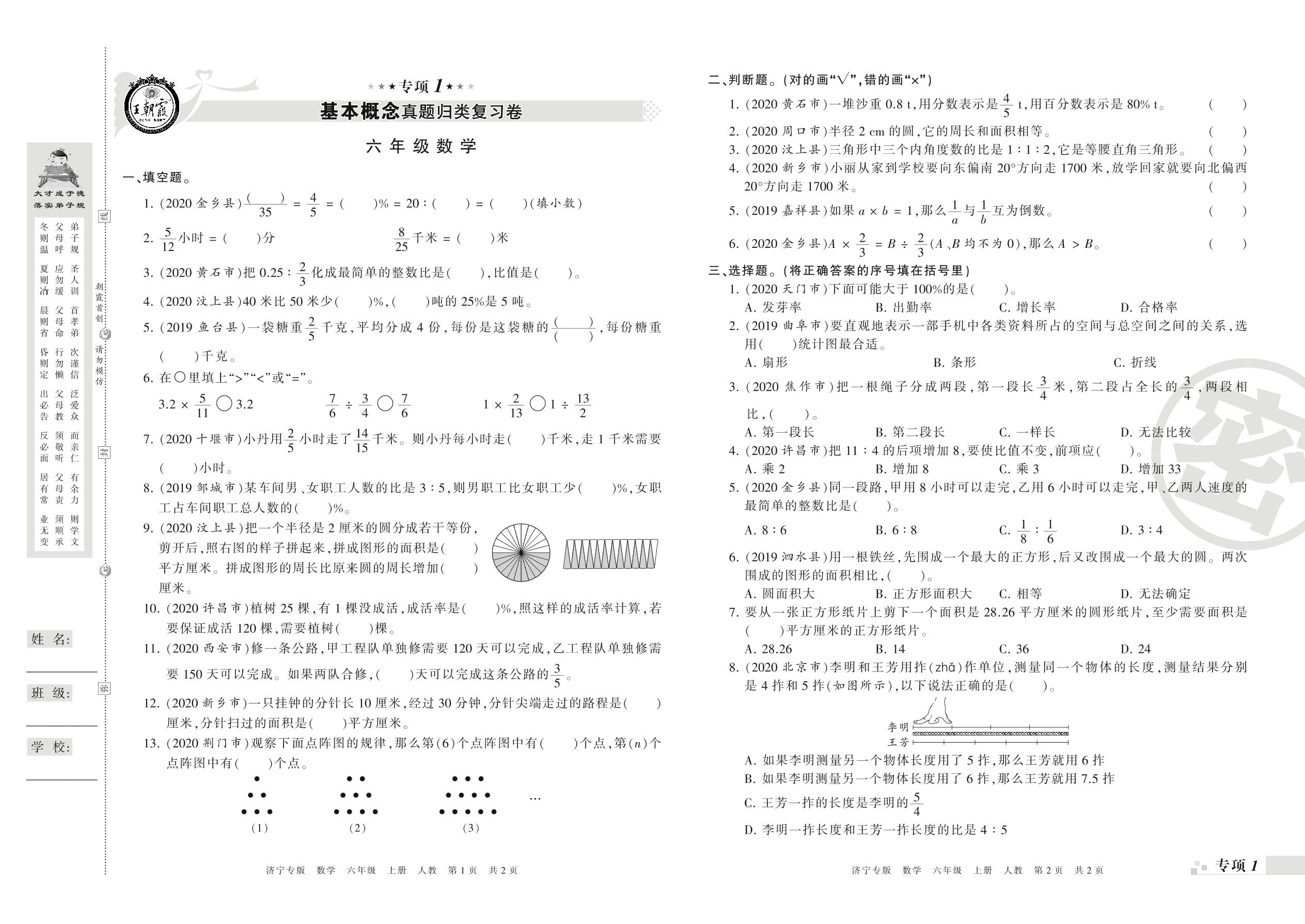 王朝霞期末专项卷——基本概念、计算真题归类复习六年级上册数学(人教版)_R21080592220【0】