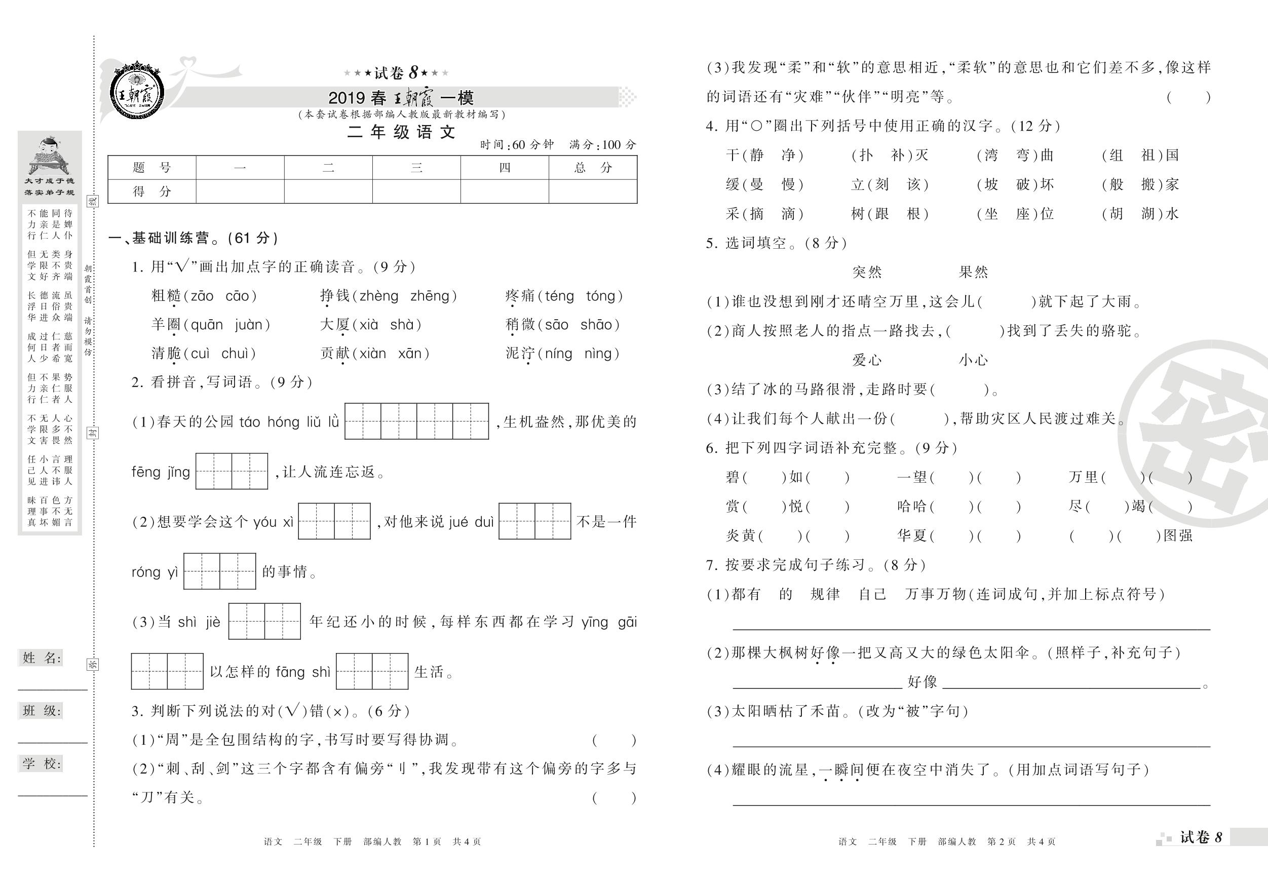 王朝霞期末模拟卷二年级下册语文(人教版)_R21080172109【8】