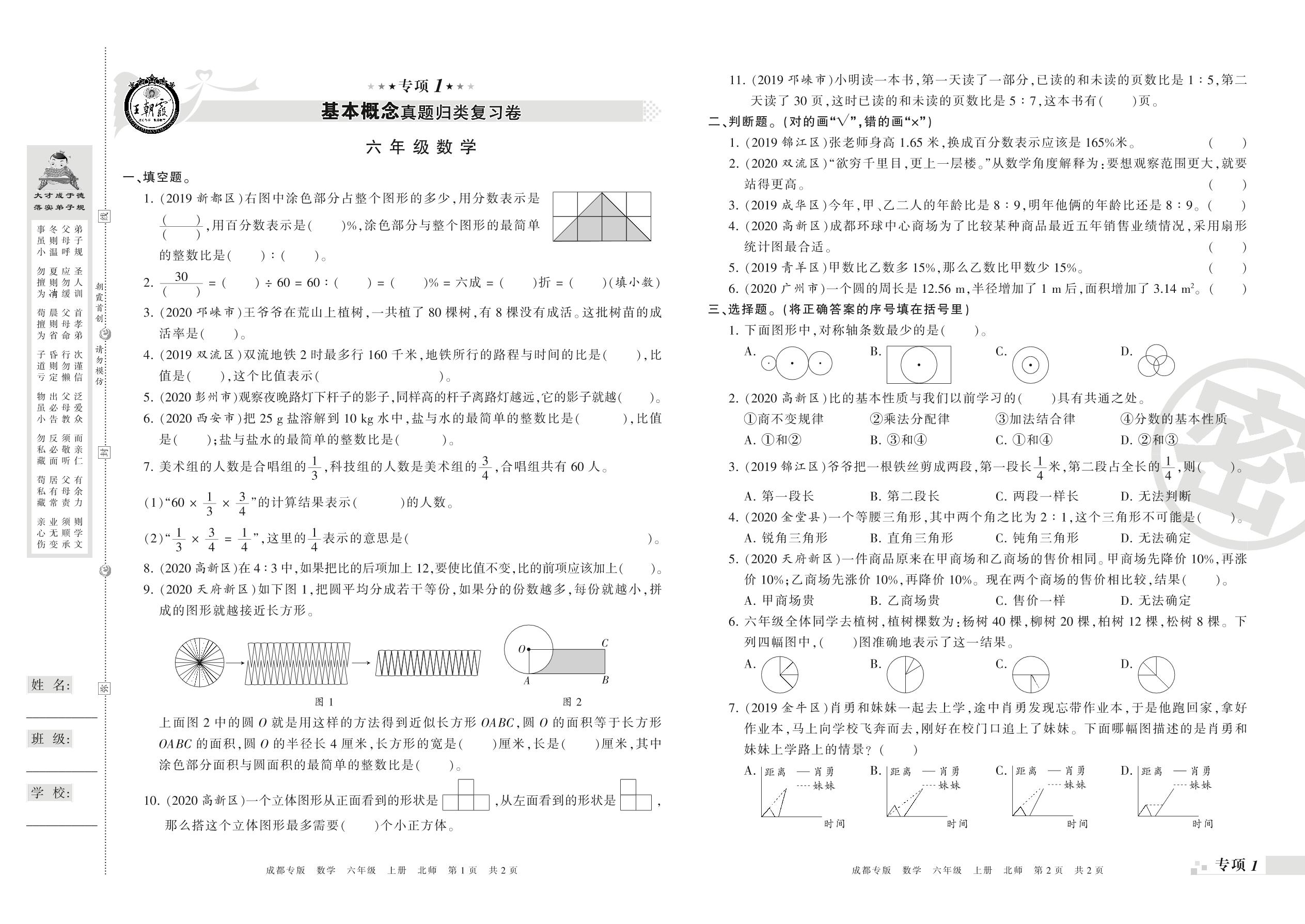 王朝霞期末专项卷——基本概念、计算真题归类复习六年级上册数学(北师版)_R21080592309【0】