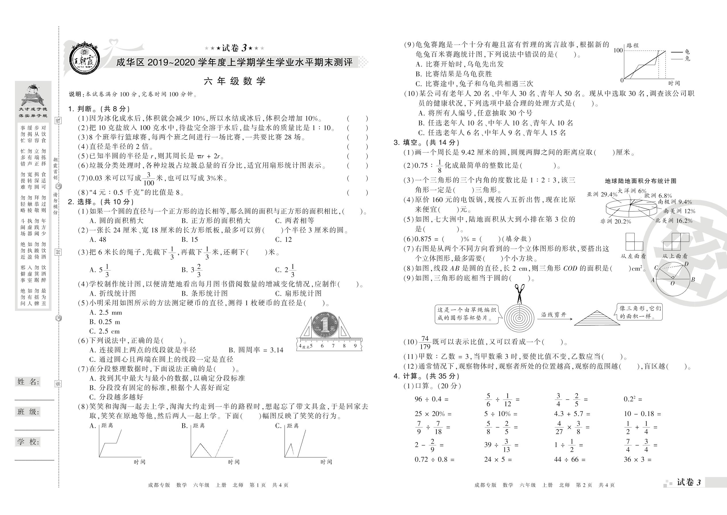 2019-2020学年第一学期成都市成华区六年级数学试卷(北师版)【3】