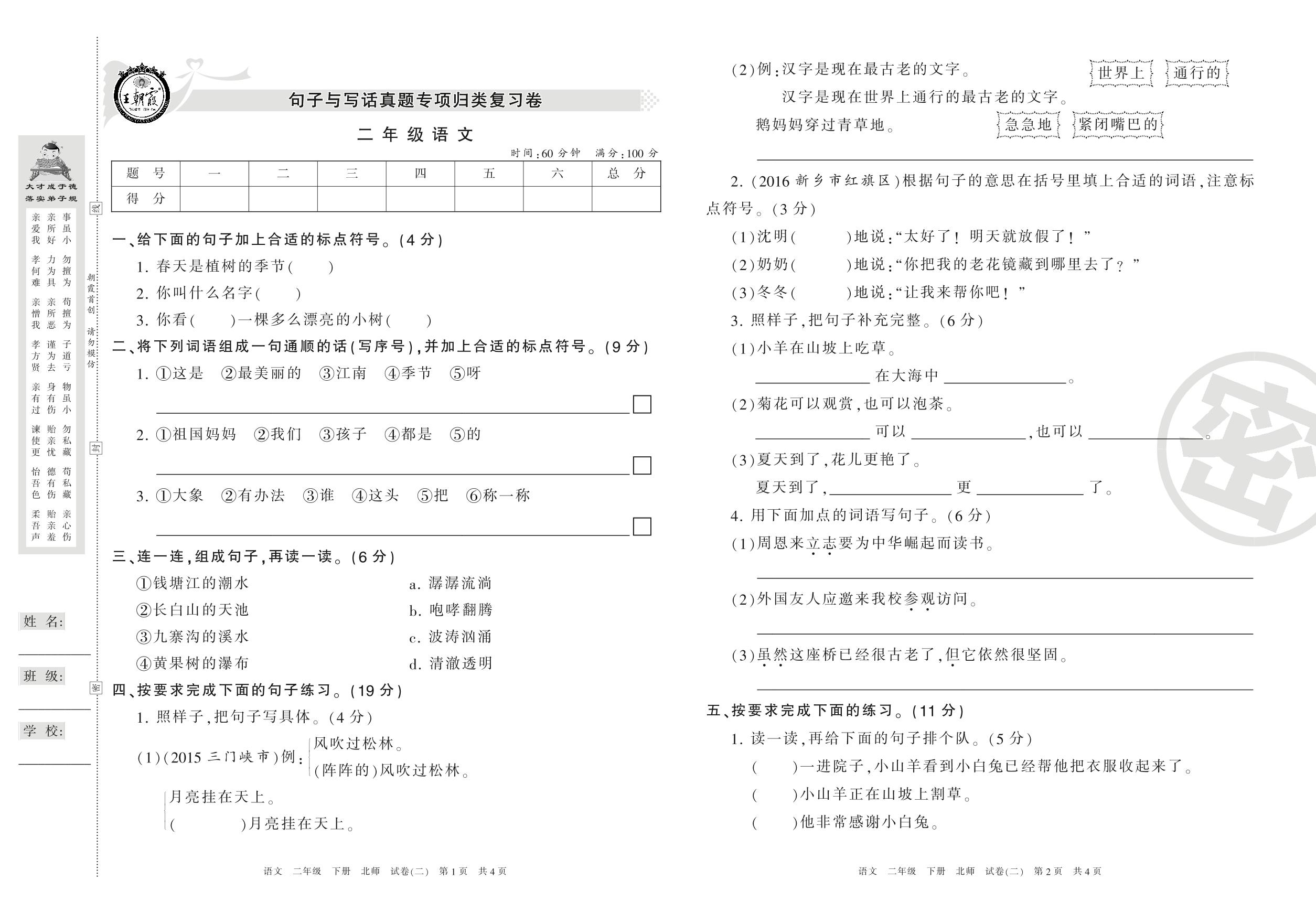 王朝霞期末专项卷二年级下册语文(北师版)_R21080172121【2】