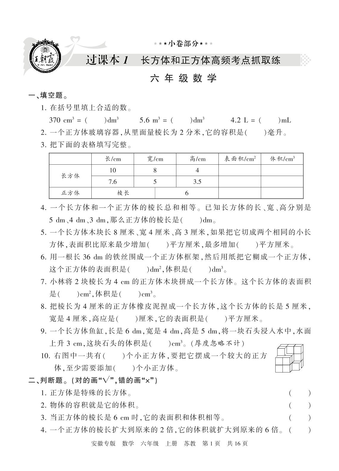 王朝霞期末小卷六年级上册数学(苏教版)_R21080592448【0】