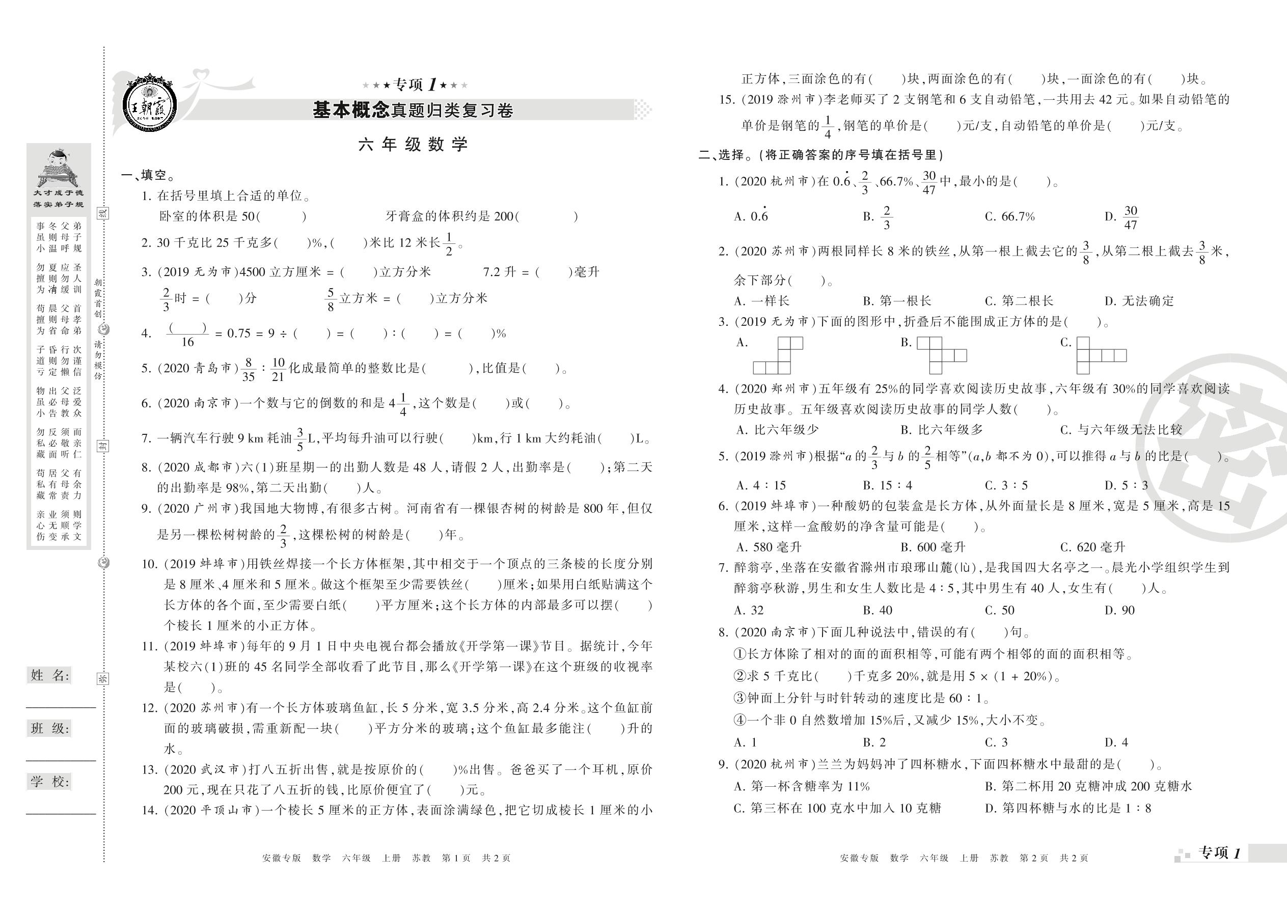 王朝霞期末专项卷——基本概念、计算真题归类复习六年级上册数学(苏教版)