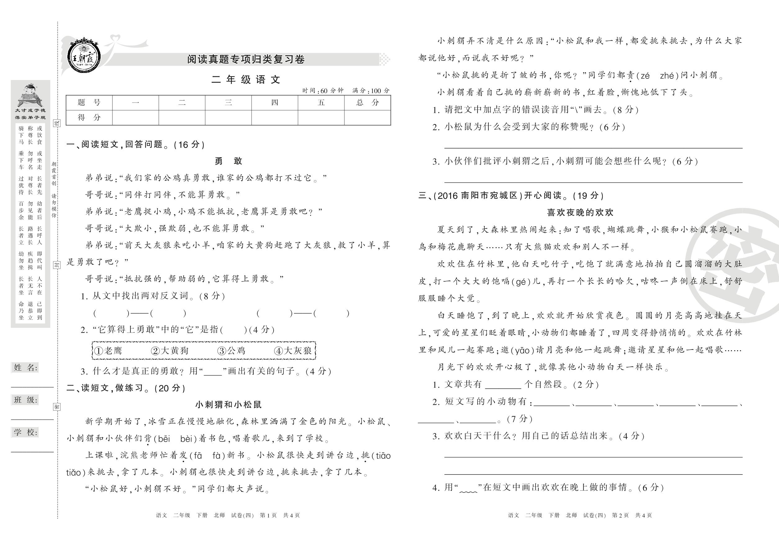 王朝霞期末专项卷二年级下册语文(北师版)_R21080172130【4】