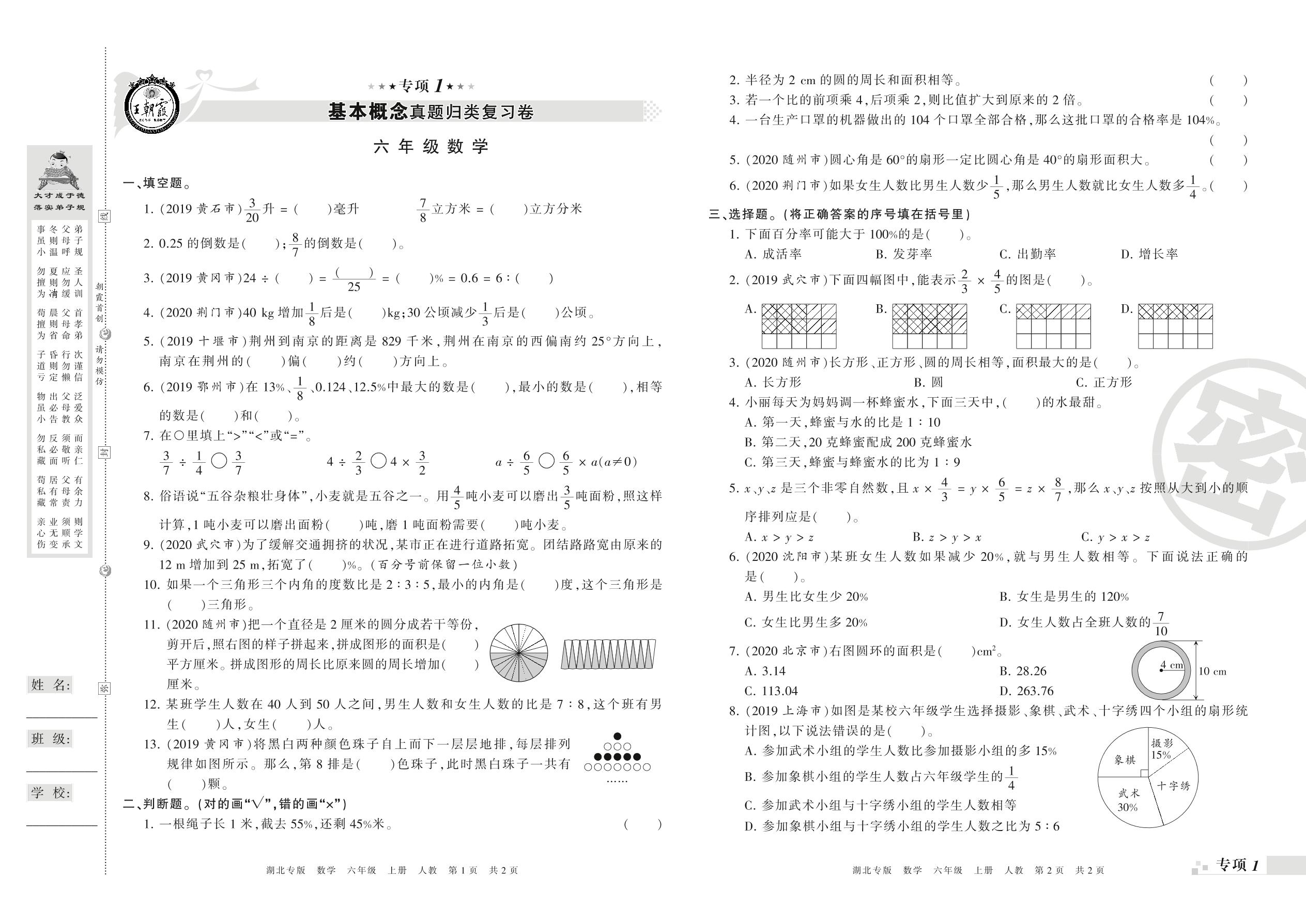 王朝霞期末专项卷——基本概念、计算真题归类复习六年级上册数学(人教版)_R21080592643【0】