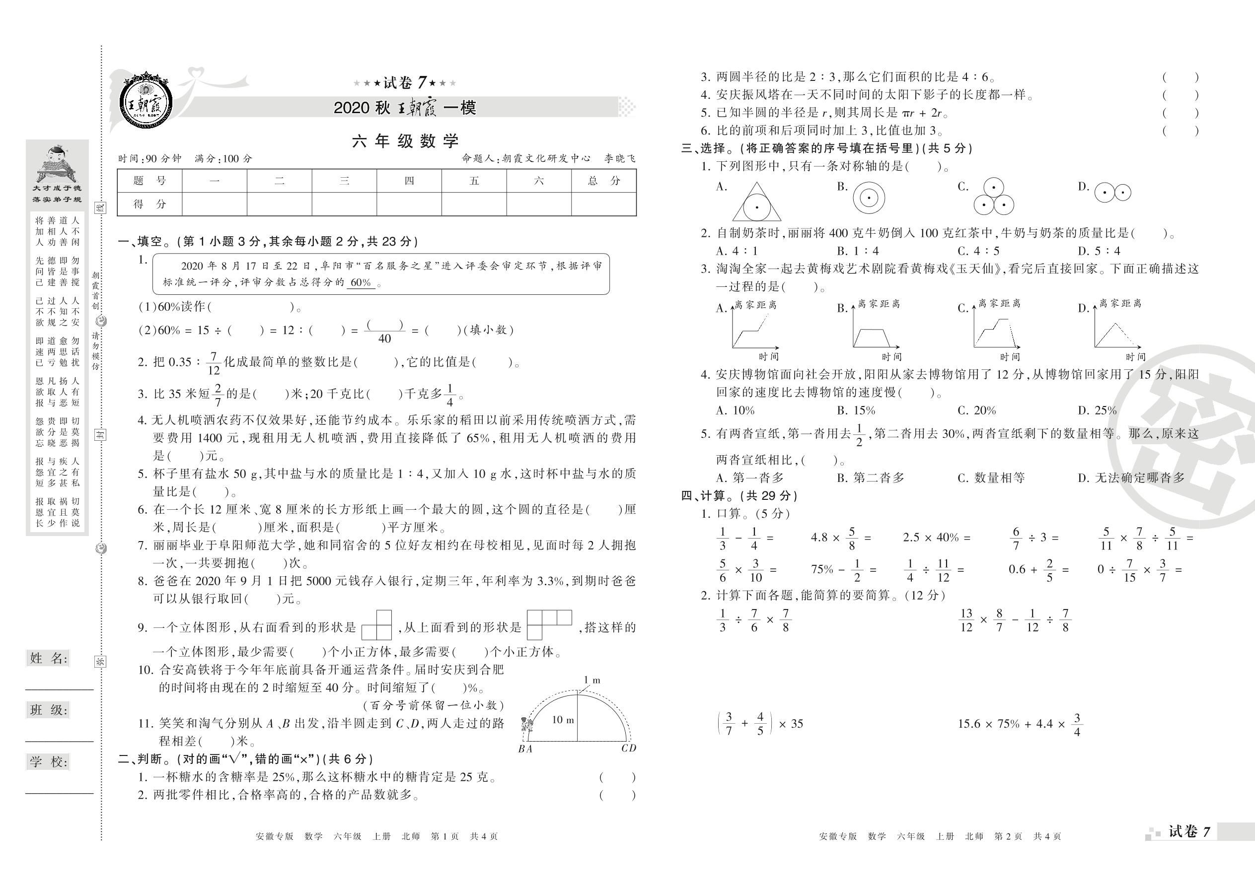 王朝霞期末模拟卷六年级上册数学(北师版)_R21080592743【7】
