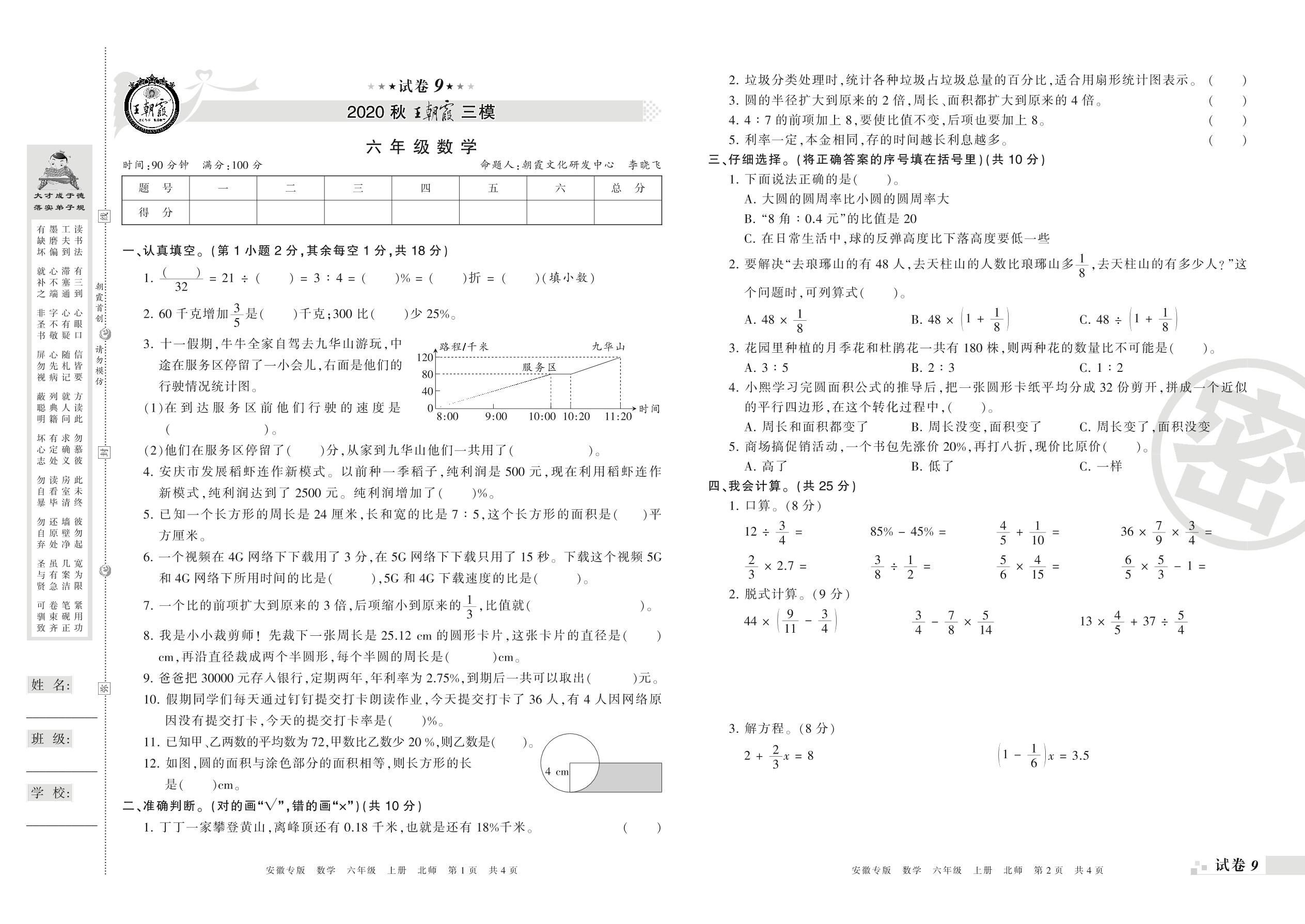 王朝霞期末模拟卷六年级上册数学(北师版)_R21080592751【9】