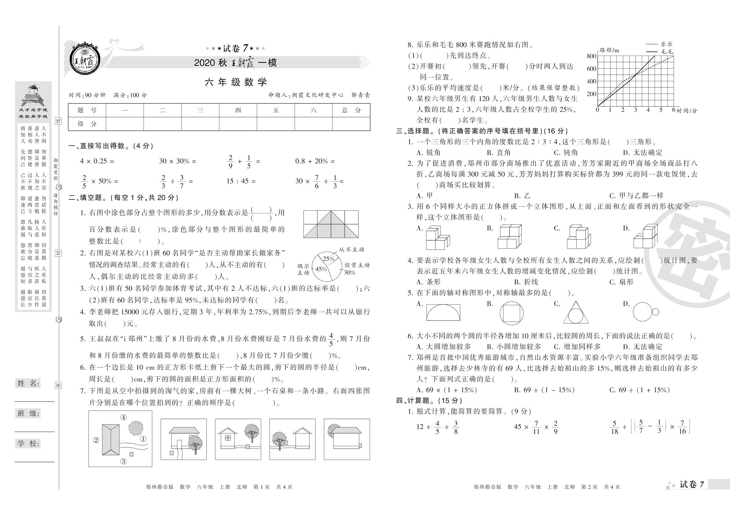 王朝霞期末模拟卷六年级上册数学(北师版)_R21080592836【7】