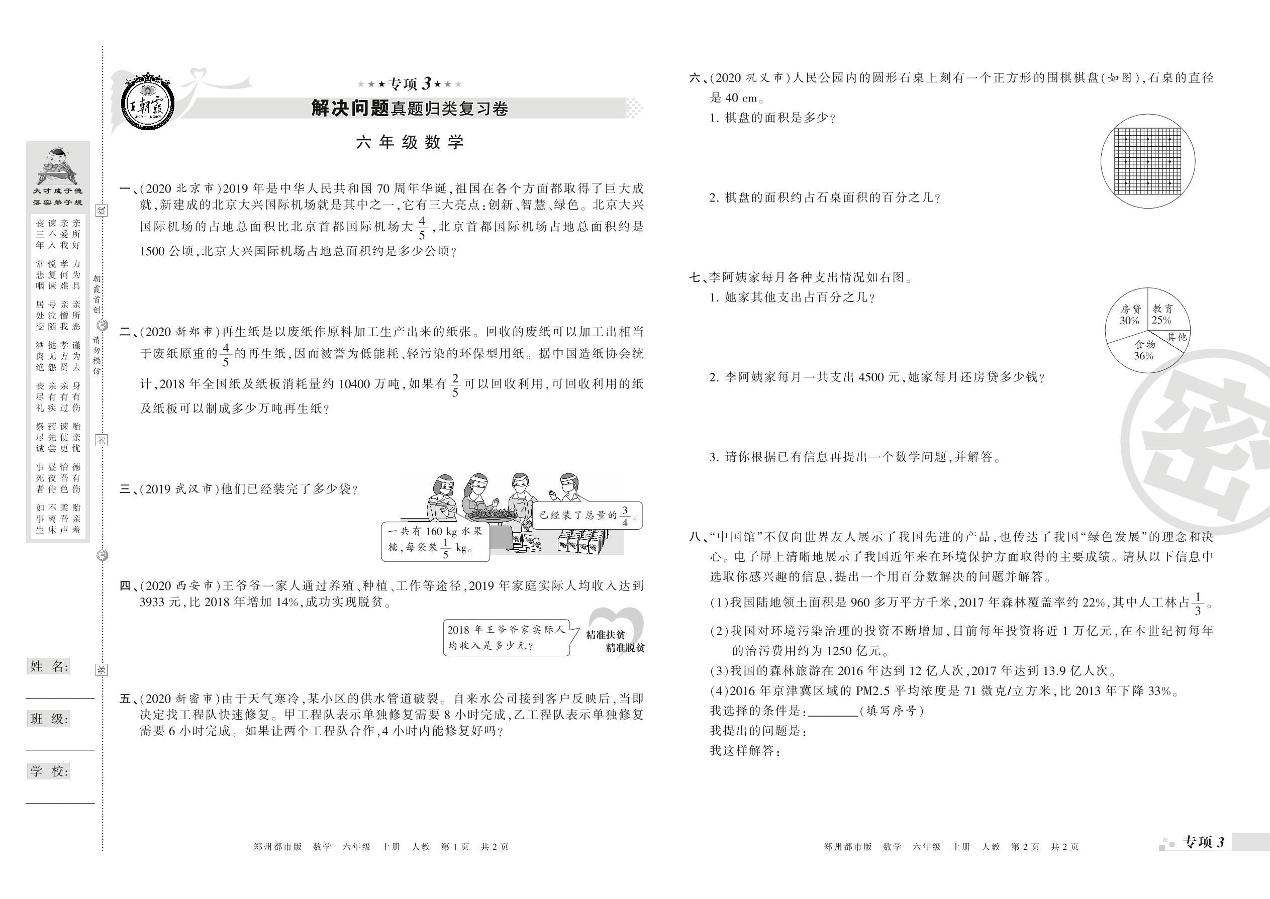 王朝霞期末专项卷——解决问题真题归类复习、新颖题速递:生活与数学六年级上册数学(人教版)_R21080593041【0】