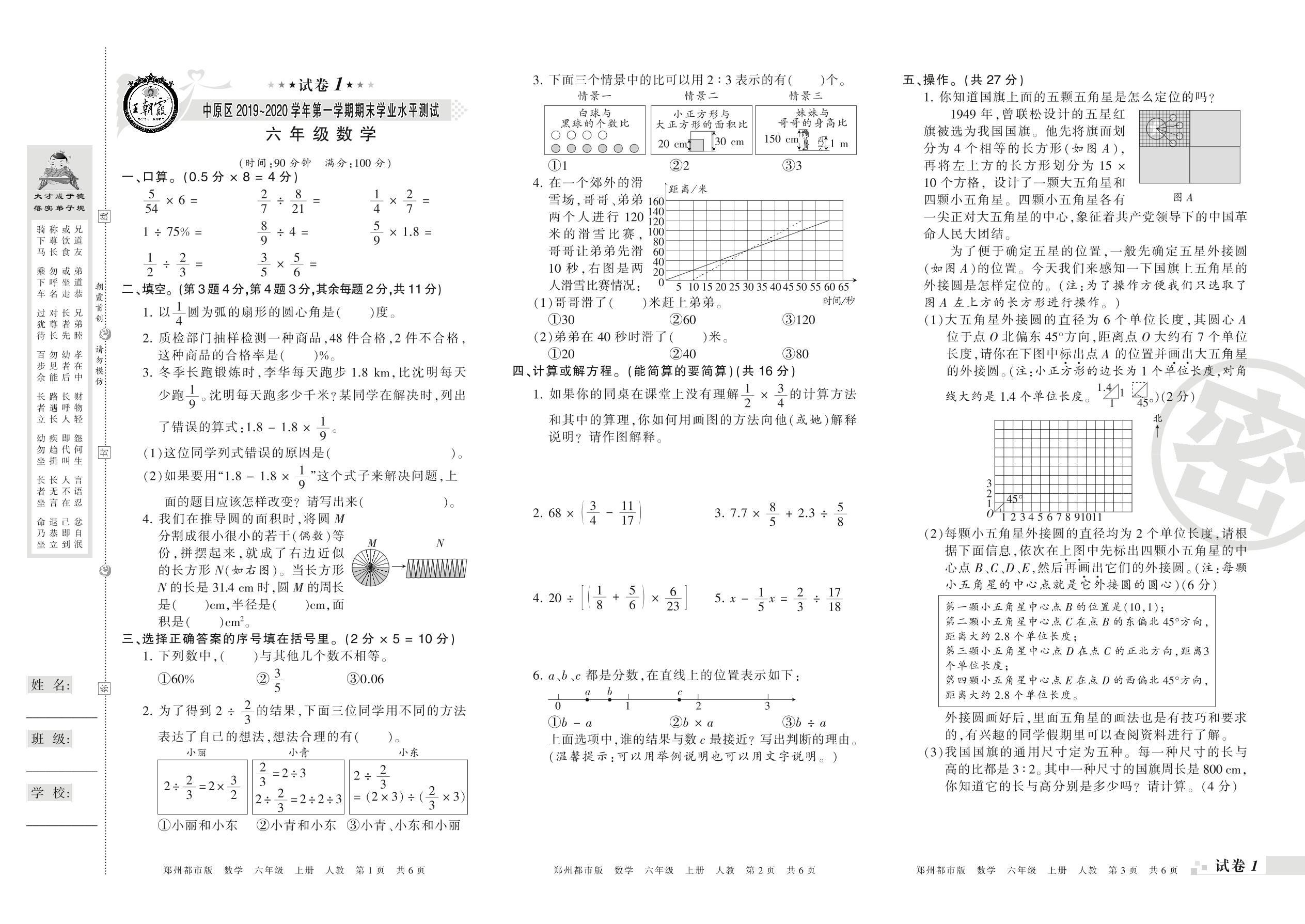 2019-2020学年第一学期郑州市中原区六年级数学试卷(人教版)_R21080593046【1】