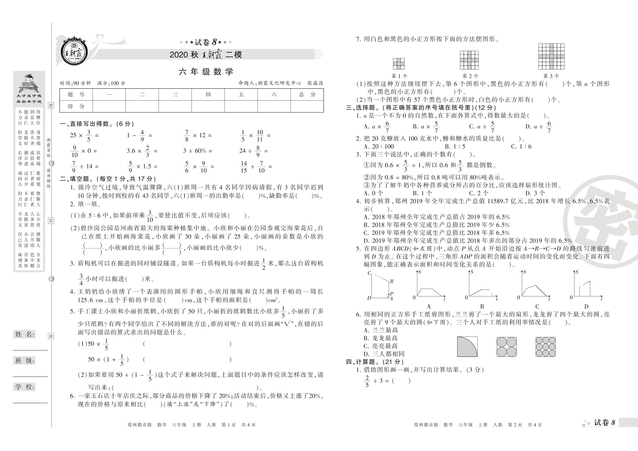 王朝霞期末模拟卷六年级上册数学(人教版)_R21080593115【8】