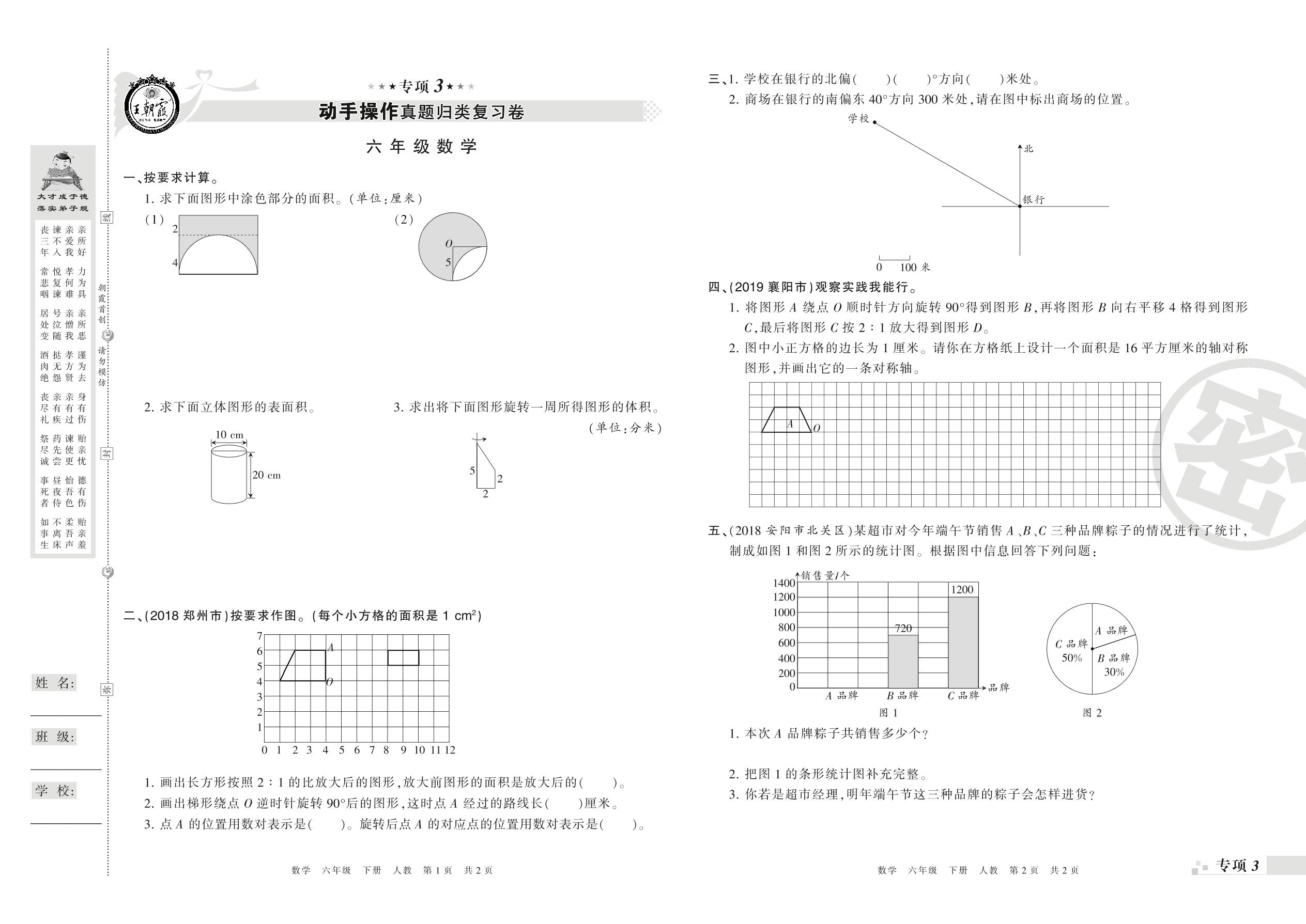 王朝霞期末专项卷——动手操作、解决问题真题归类复习卷六年级下册数学(人教版)_R21080593134【0】