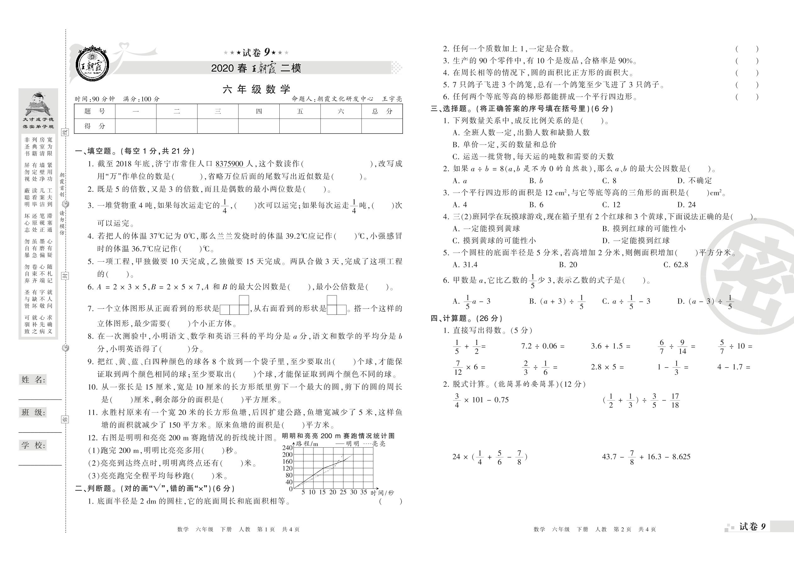 王朝霞期末模拟卷六年级下册数学(人教版)_R21080593300【9】