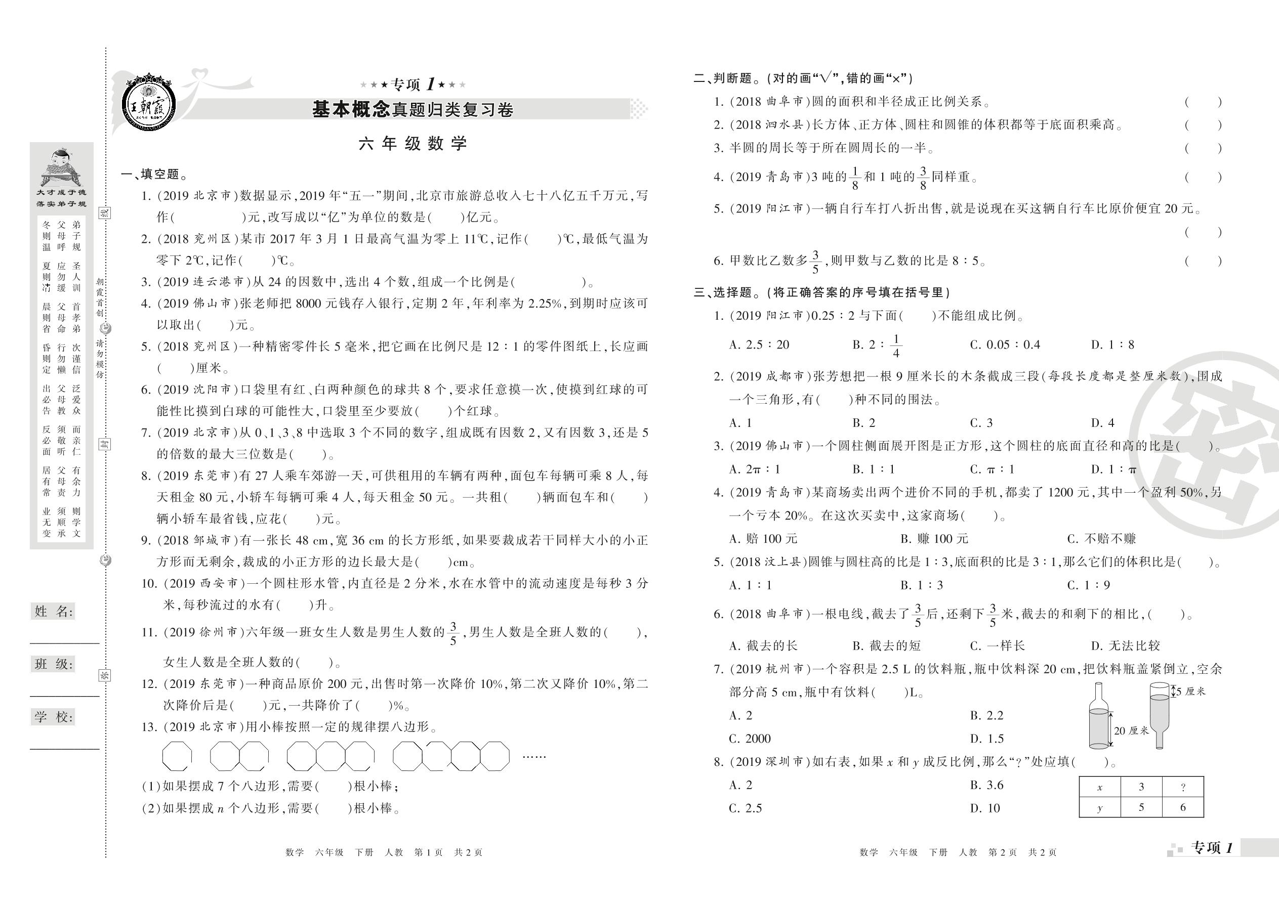 王朝霞期末专项卷——基本概念、计算真题归类复习卷六年级下册数学(人教版)_R21080593310【0】