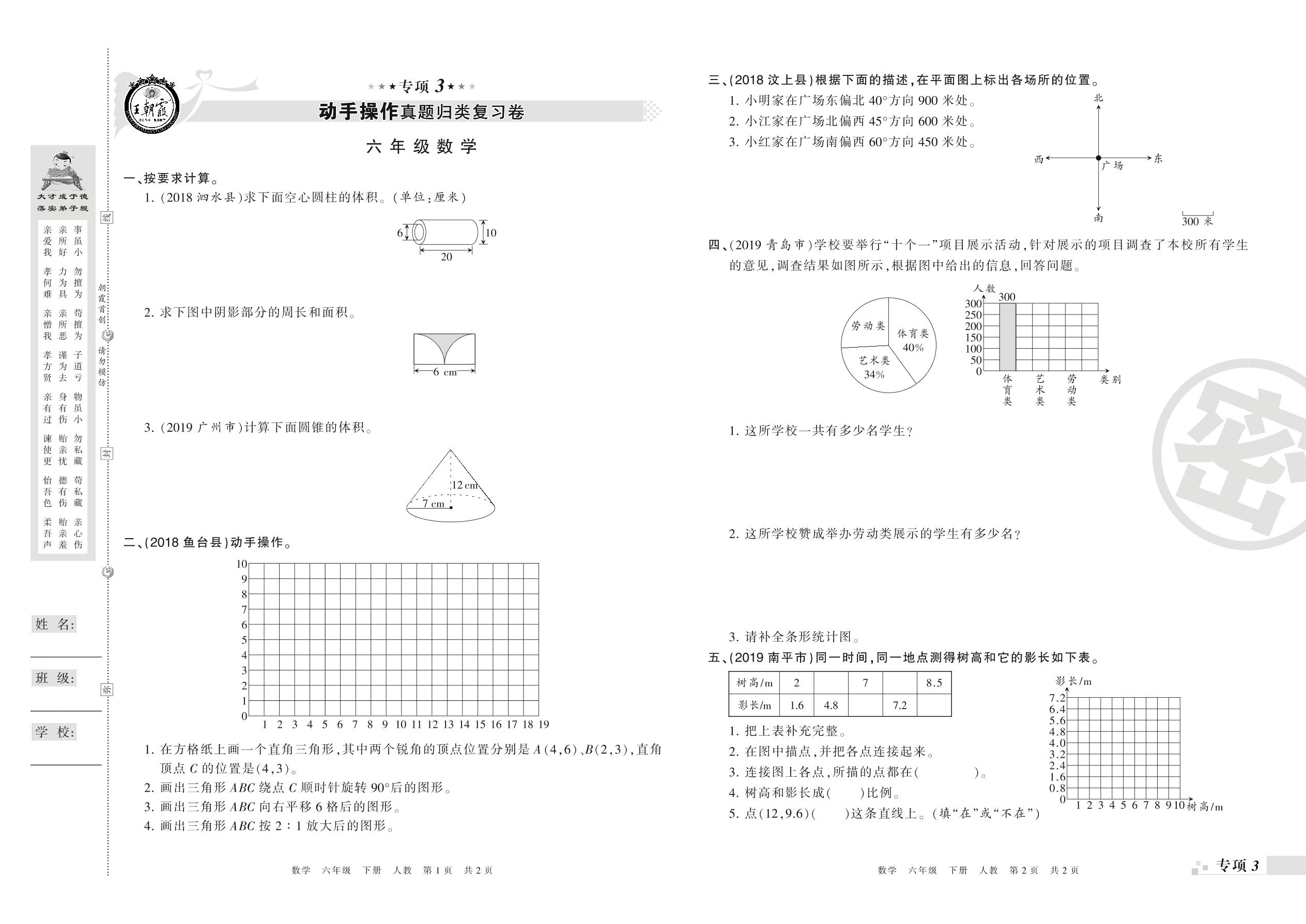 王朝霞期末专项卷——动手操作、解决问题真题归类复习卷六年级下册数学(人教版)_R21080593314【0】