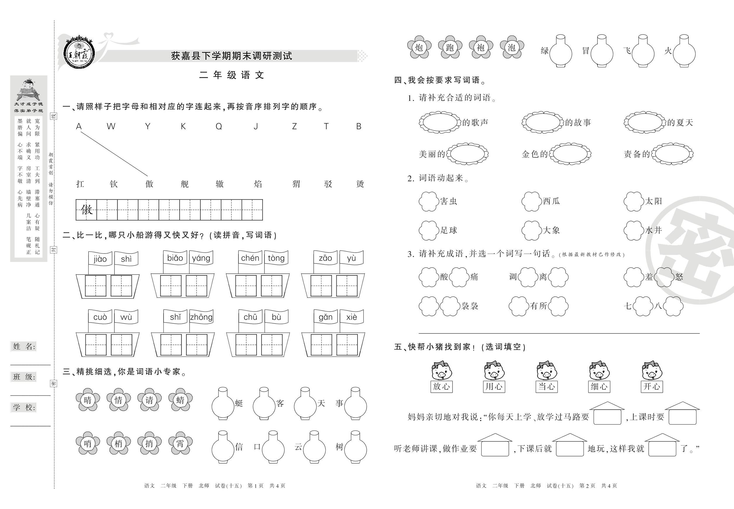 2015-2016学年第二学期新乡市获嘉县二年级语文试卷(北师版)【15】