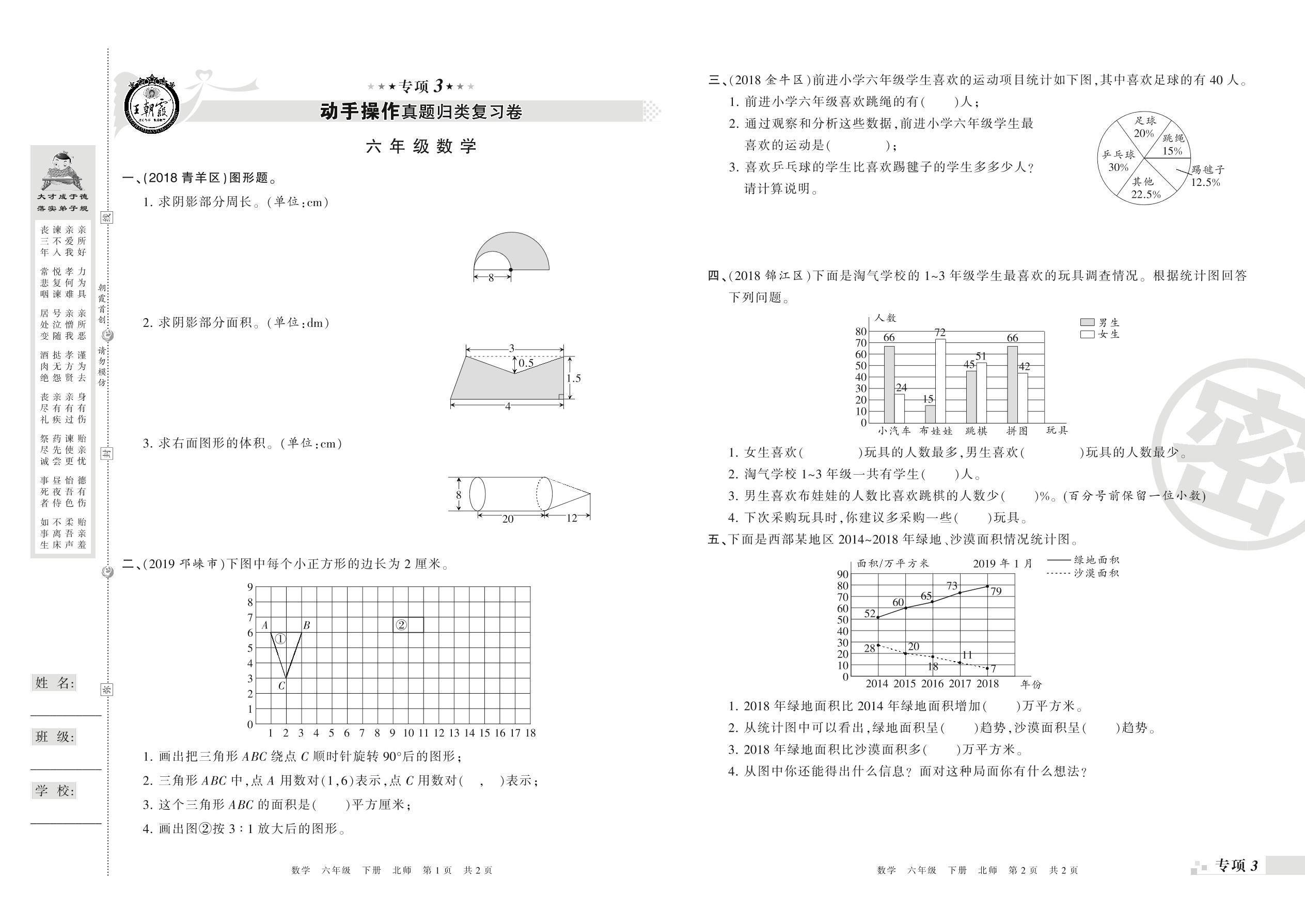 王朝霞期末专项卷——动手操作、解决问题真题归类复习卷六年级下册数学(北师版)_R21080593403【0】