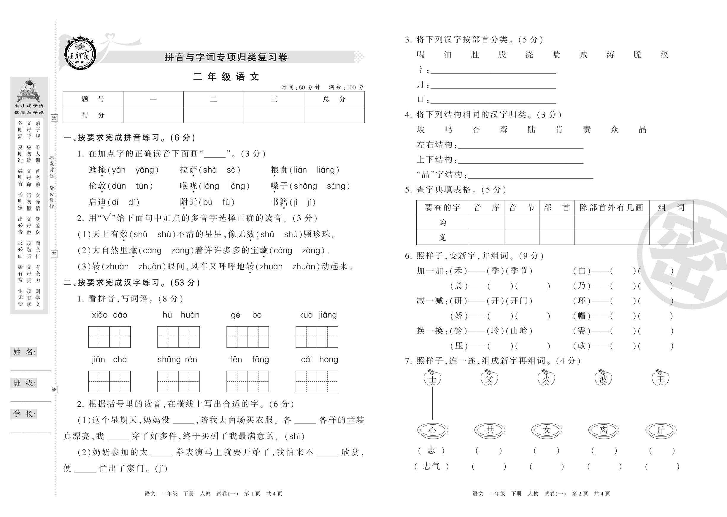 王朝霞期末专项卷二年级下册语文(人教版)_R21080172229【1】