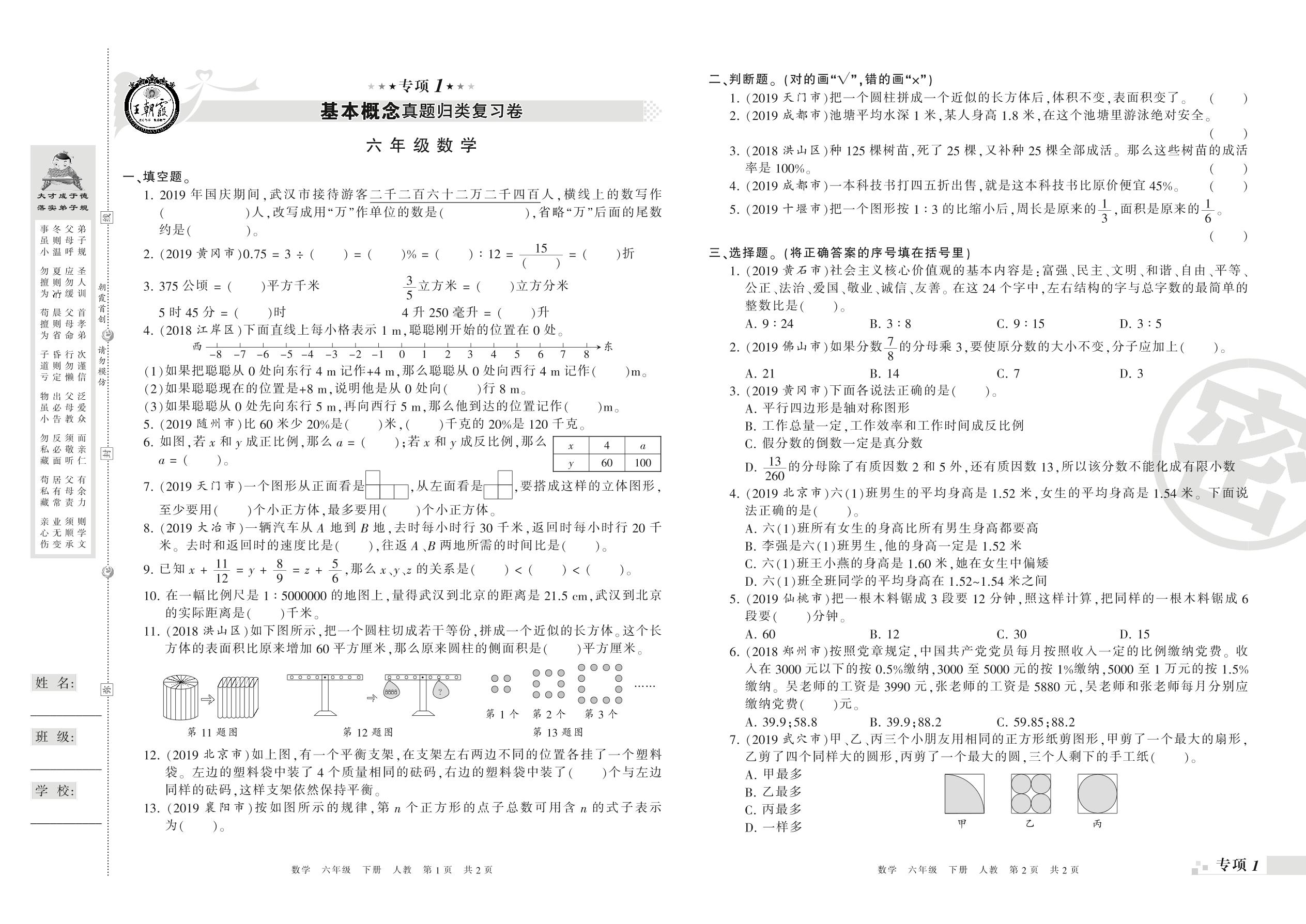 王朝霞期末专项卷——基本概念、计算真题归类复习卷六年级下册数学(人教版)_R21080593451【0】