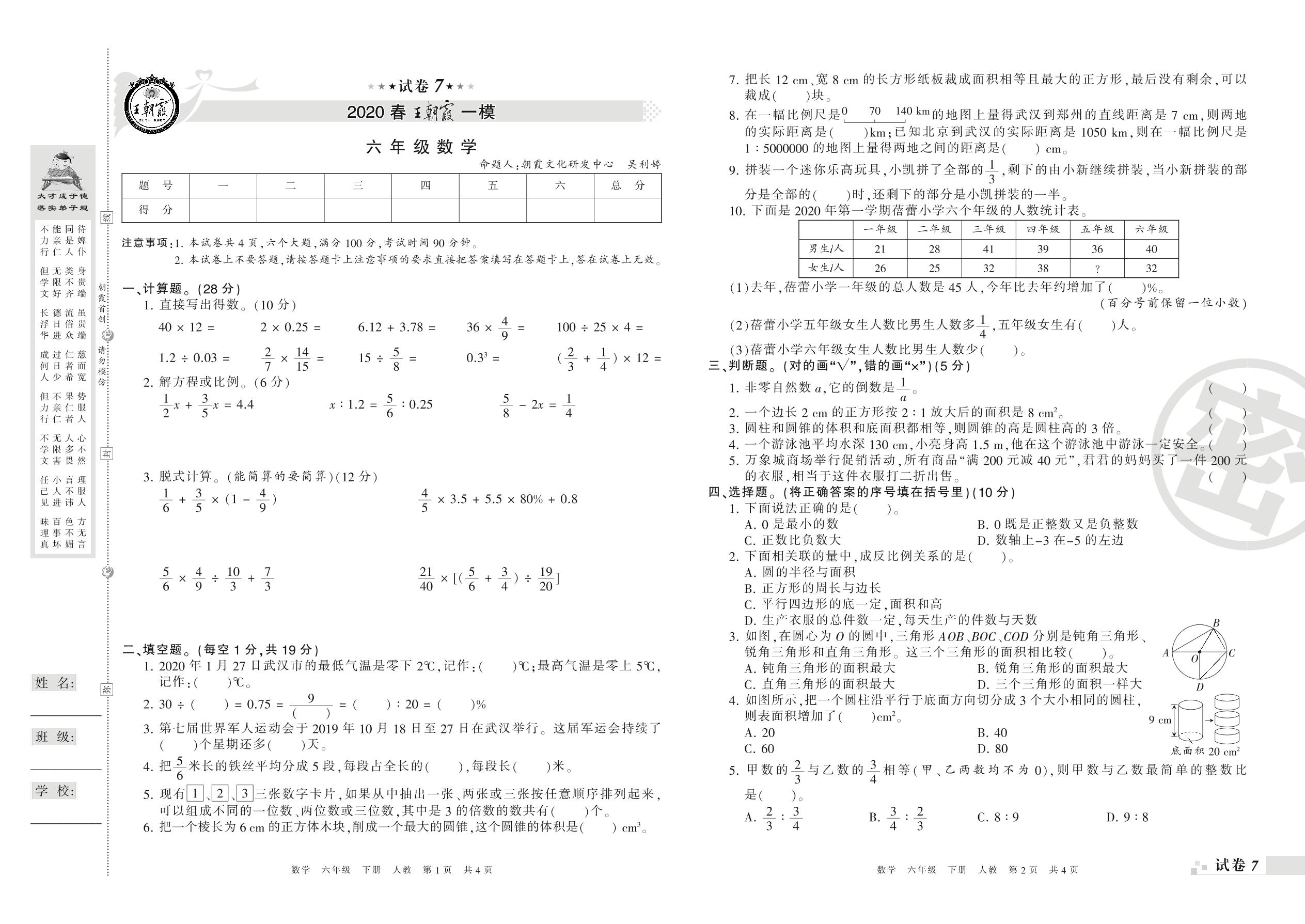 王朝霞期末模拟卷六年级下册数学(人教版)_R21080593528【7】