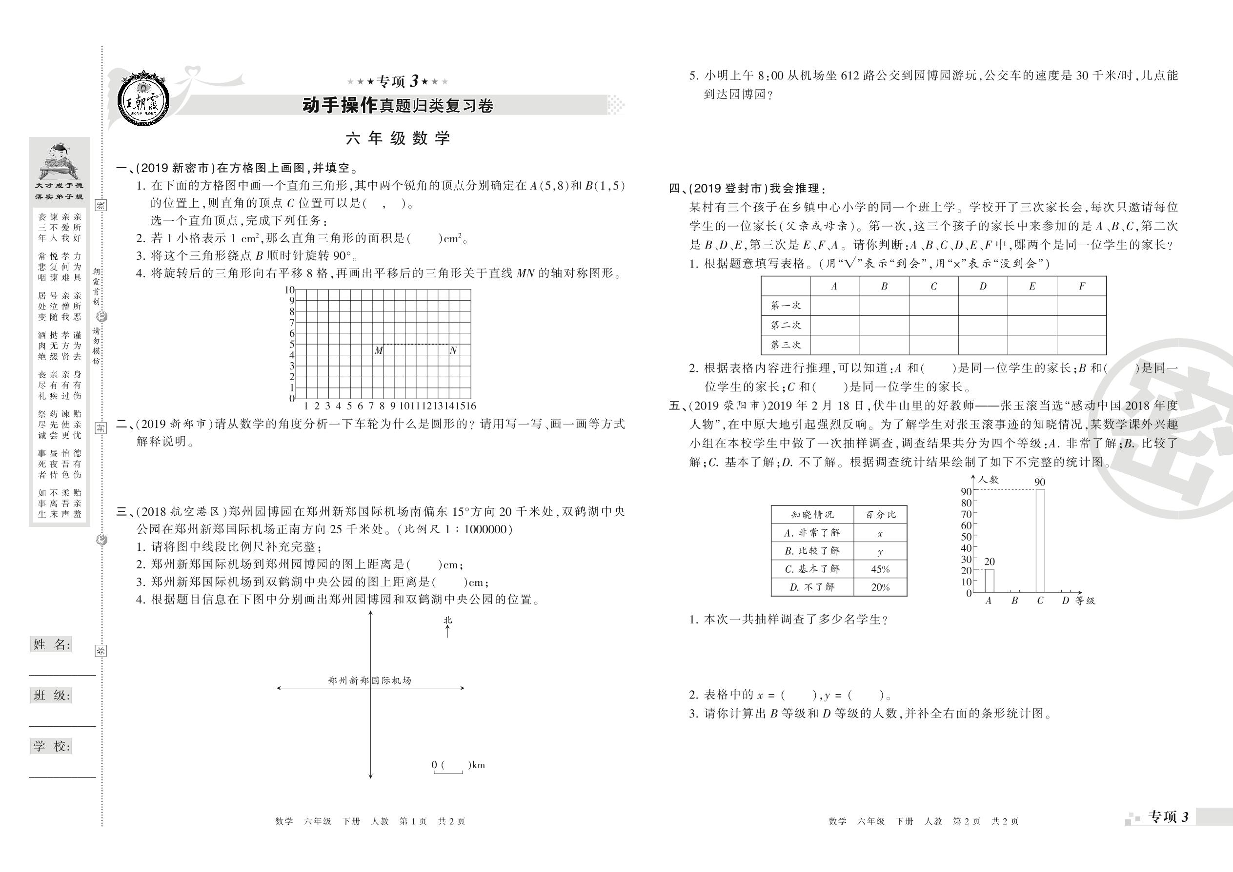 王朝霞期末专项卷——动手操作、解决问题真题归类复习卷六年级下册数学(人教版)_R21080593638【0】