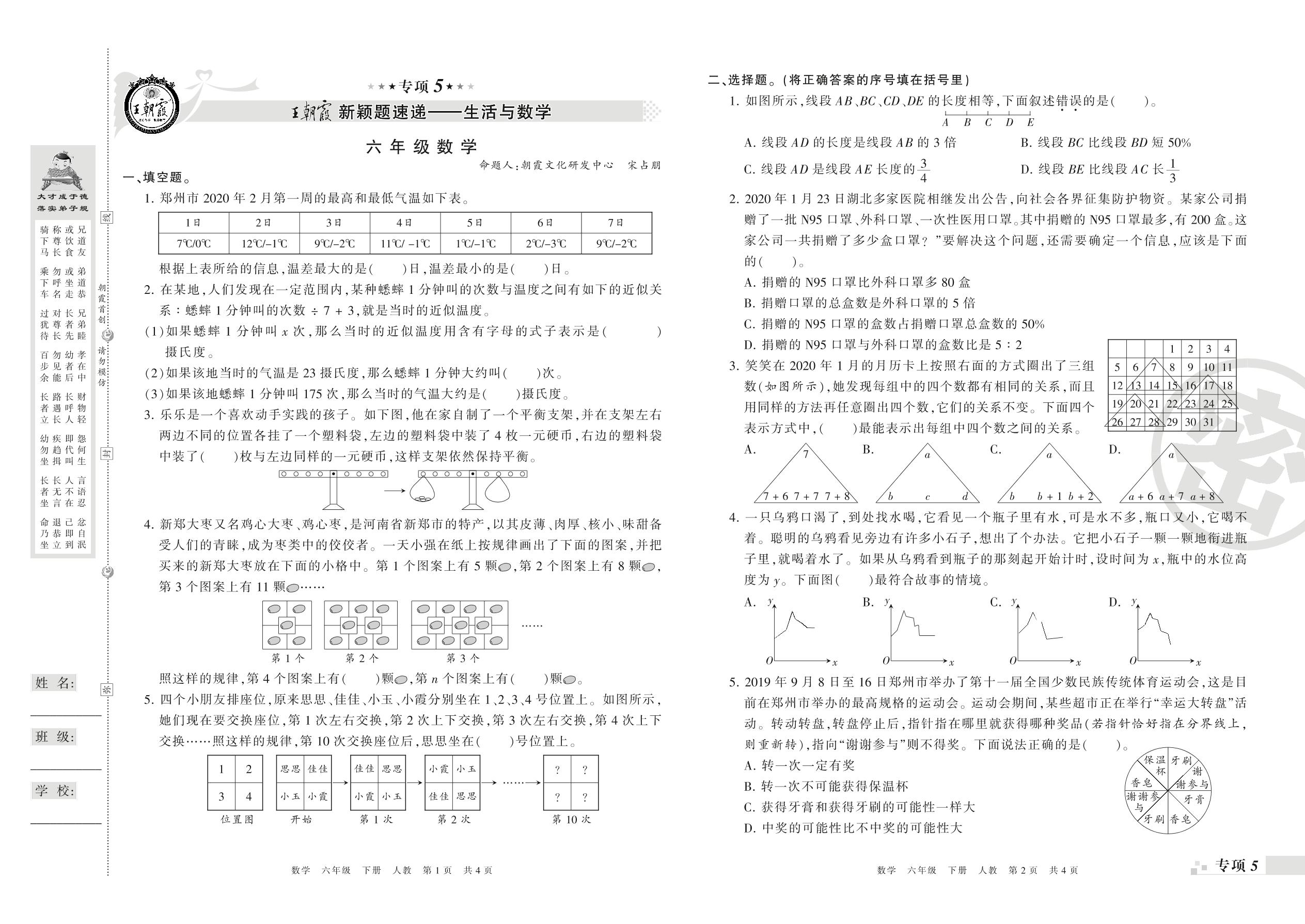 王朝霞期末专项卷——新颖题速递:生活与数学六年级下册数学(人教版)_R21080593641【0】