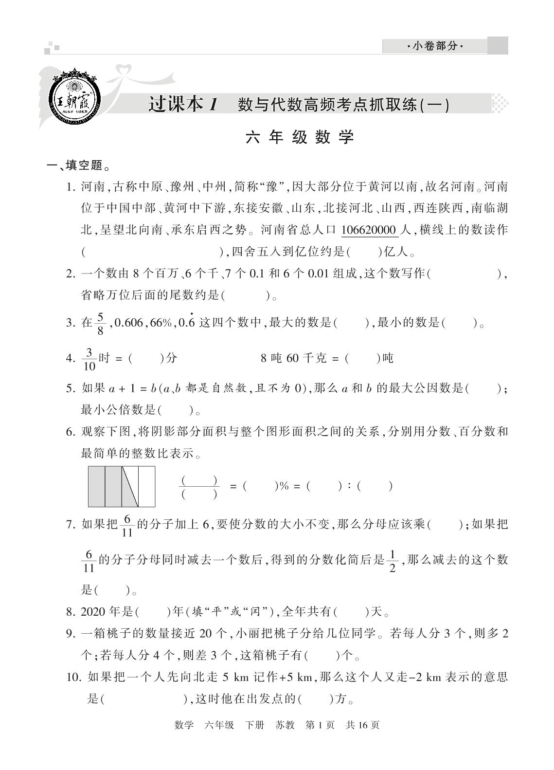 王朝霞期末过课本六年级下册数学(苏教版)【0】