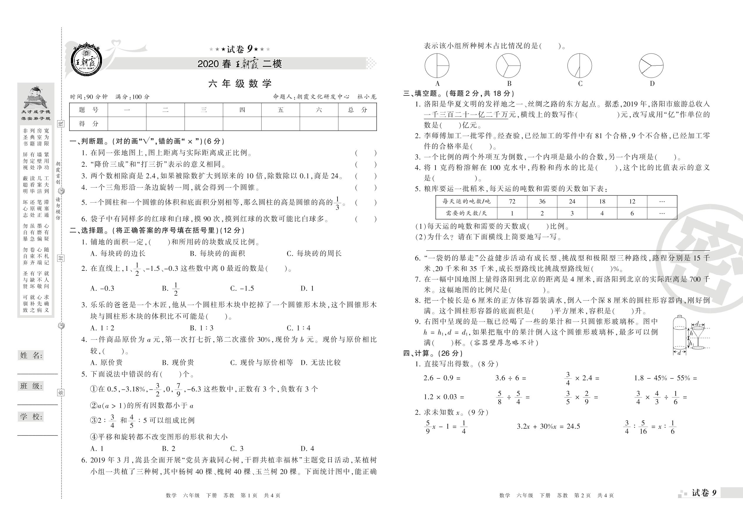 王朝霞期末模拟卷六年级下册数学(苏教版)_R21080594025【10】