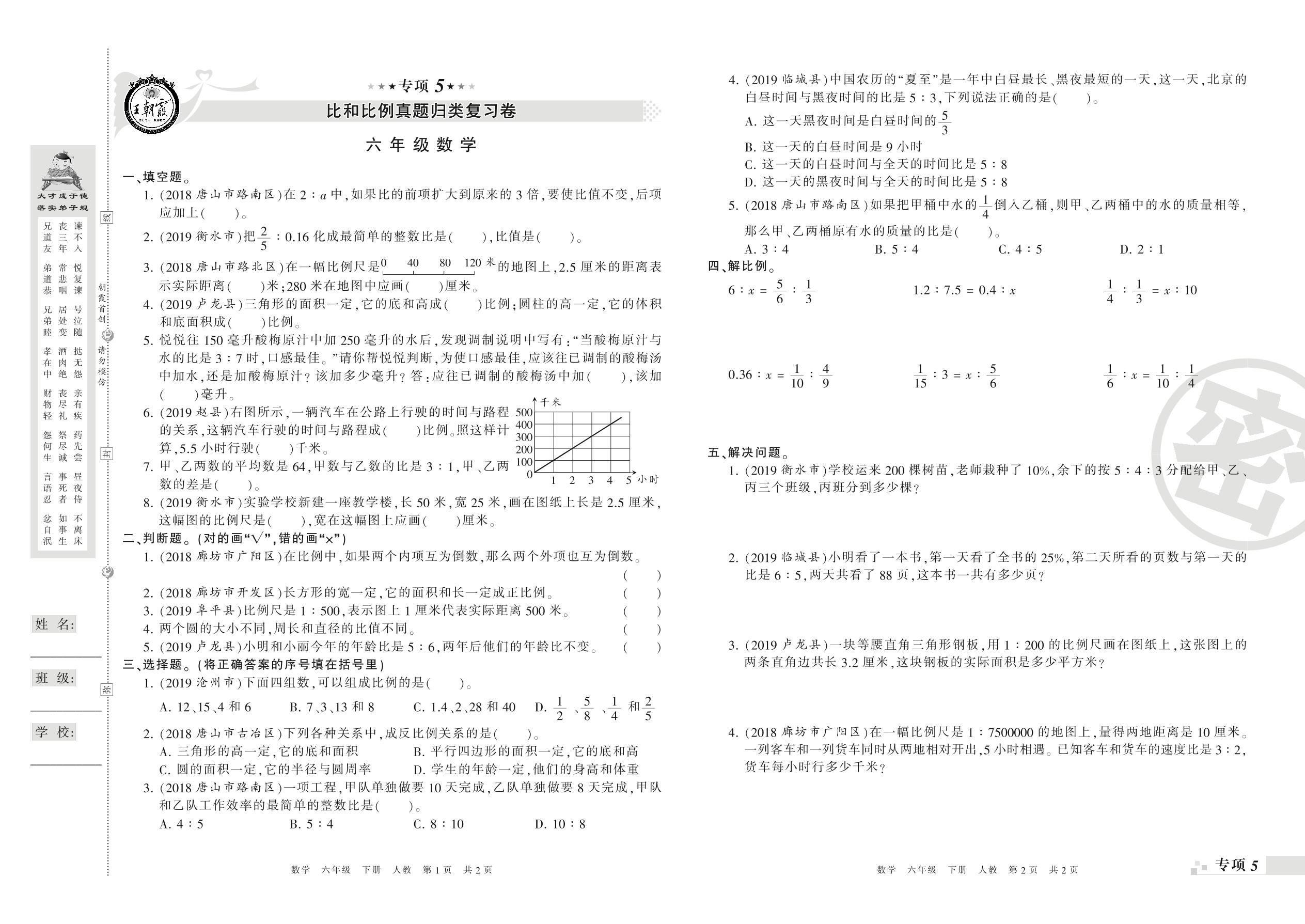 王朝霞期末专项卷——比和比例、图形与几何(一)真题归类复习卷六年级下册数学(人教版)_R21080594208【0】
