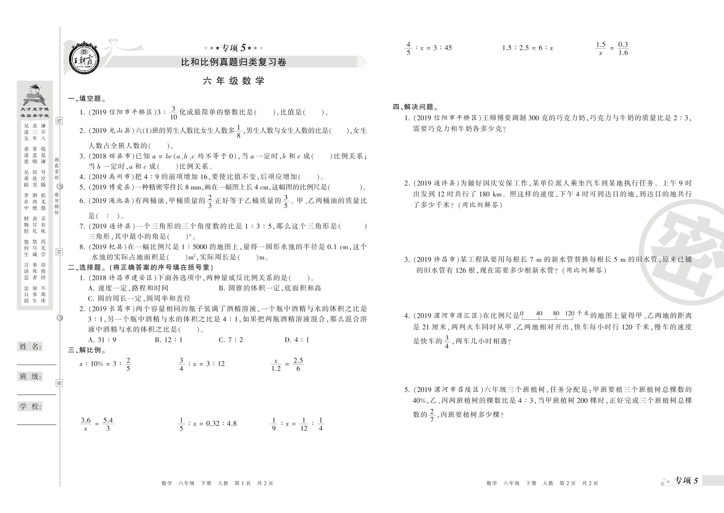 王朝霞期末专项卷——比和比例、图形与几何(一)真题归类复习卷六年级下册数学(人教版)_R21080594801【0】