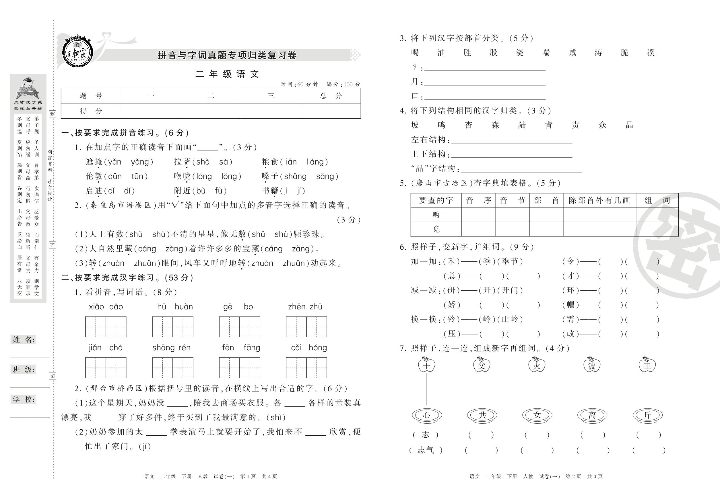 王朝霞期末专项卷二年级下册语文(人教版)_R21080172346【1】