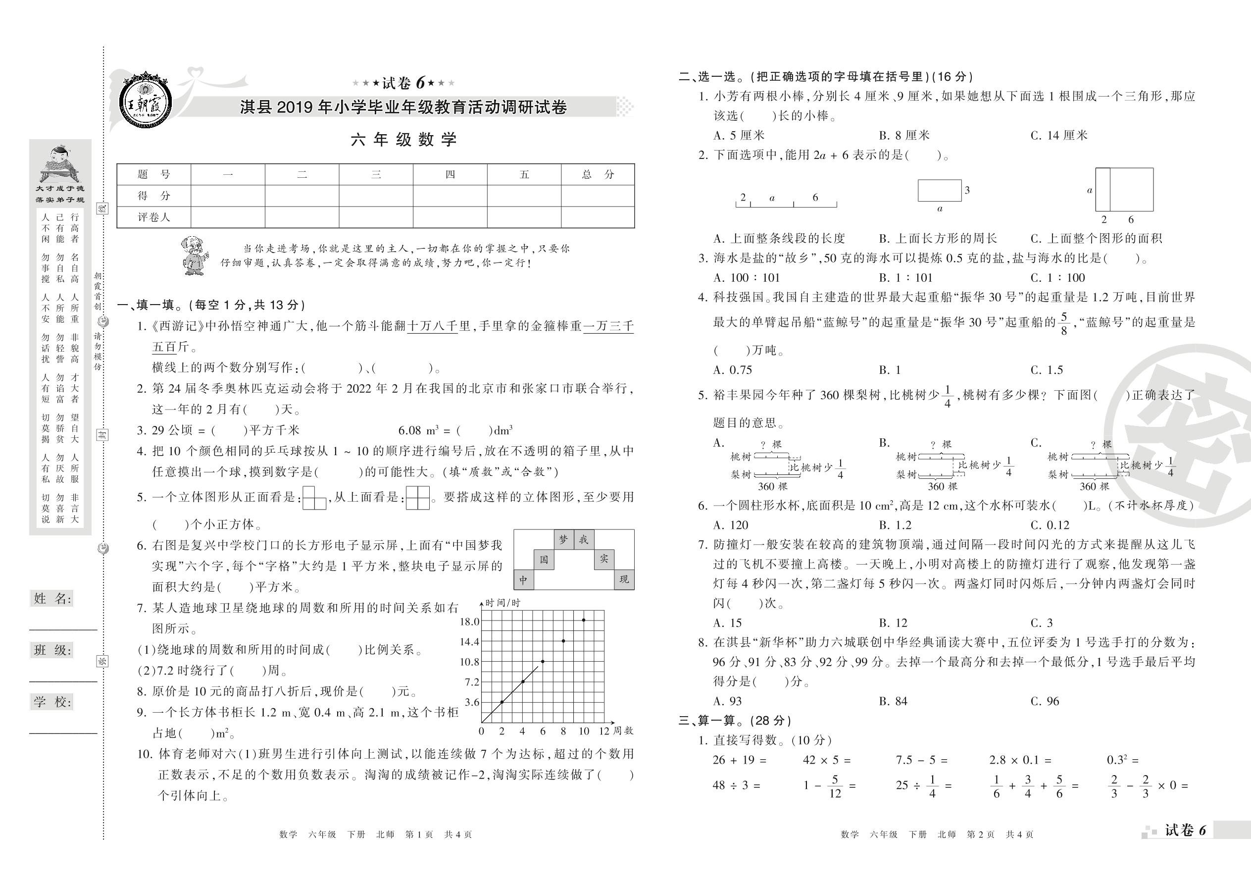 2018-2019学年第二学期鹤壁市淇县六年级数学试卷(北师版)【6】